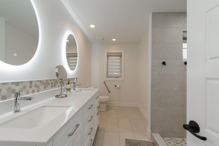 Upstairs you’ll find three bedrooms plus a bonus room that offers flexibility for a second living space, playroom or home theatre. The primary suite is luxurious, featuring a completely updated ensuite completed in 2024. This space feels like a personal retreat with a new freestanding tub, modern double vanity, new floors and upgraded fixtures along with a new toilet and refreshed finishes. The remaining two bedrooms are generous in size and share a four-piece bathroom.