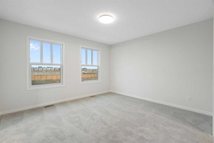 There’s a feeling you get the moment you walk through the doors of 680 Buffaloberry Manor SE - a sense that life’s next chapter is about to unfold. Perfectly positioned in Logan Landing, one of Southeast Calgary’s most anticipated new master-planned communities, this brand-new Cedarglen Homes build isn’t just a house - it’s the promise of a more inspired way to live. Natural light floods through oversized windows, illuminating an open-concept layout designed for connection. The kitchen is sleek, modern, and effortlessly functional & it anchors the main floor with a large island, quartz countertops, and contemporary cabinetry. You’ll get to choose your own appliances at the builder’s supplier with an allowance of $6900. The kitchen flows seamlessly into the living and dining spaces, where laughter, conversation, and everyday life feel right at home. Step through to the back deck, where weekend grilling and golden-hour sunsets become a ritual. A mudroom and powder room complete the thoughtful main-floor design. Upstairs, discover three spacious bedrooms, each with its own walk-in closet - a rare luxury that keeps everything beautifully organized. The primary suite feels like a boutique retreat, featuring a spa-inspired ensuite with dual vanities and a glass walk-in shower. The walk-through closet connecting directly to the laundry room is a detail that quietly transforms daily life, making every morning just a little easier. Below, the undeveloped basement with a side entrance and 3-piece rough-in offers endless potential - whether you dream of a suite for income potential (subject to City of Calgary approval), a media room, or a home gym. Outside, the curb appeal is instant and lasting, with James Hardie siding and stone accents giving the home a timeless, modern edge. Life in Logan Landing means more than just beautiful homes - it’s about belonging to a growing community shaped by parks, pathways, and future shops all just minutes from your door. This is a neighbourhood built for connection, convenience, and the kind of lifestyle that keeps getting better with time. So don’t just find a place to live - find a place to grow, to gather, and to thrive. Your next chapter begins here. Book your private showing today. *Some photos are virtually staged.*