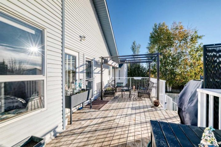 Well kept and ready to move in. This is the perfect home for a growing family. Located just steps from a school and large playground. Features include stainless steel appliances, corian counter tops, beautiful hardwood flooring throughout, and a fully developed basement. The primary bedroom is spacious and includes a 3 piece ensuite and a door leading to the rear deck. The basement has a great family room for entertaining, 2 more bedrooms, a full bathroom, storage, and a laundry room. The front entrance is adorned by a covered patio great for morning relaxation. Around the back there's a large south facing deck with a gazebo and a insulated double garage. This home has been very well cared for and is truly move in ready.