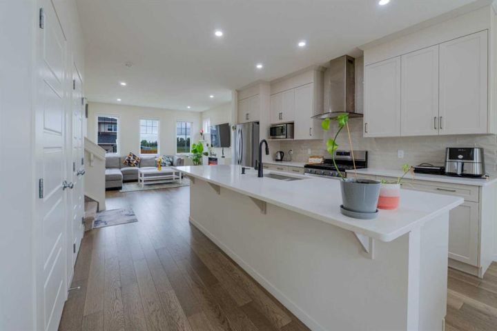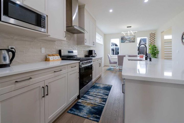 BEST PRICE IN MIDTOWN WITH UPGRADED FEATURES | CORNER TRADITIONAL LOT | SEPARATE ENTRANCE TO THE BASEMENT | LOT OF UPGRADES FROM TRICO BUILDER | Welcome to this beautifully designed laned home in the desirable community of Midtown, ideally situated on a rare traditional corner lot next to green area & walking trail with excessive outdoor space at the front, back, and sides—perfect for summer BBQs, family gatherings, or a fun play area for the kids. This beautiful North-facing home offers the perfect orientation for natural light lovers — with abundant sunlight streaming into the backyard from morning to dusk. Whether you're enjoying your morning coffee, tending to a garden, or entertaining guests, the sunlit outdoor space creates a warm and inviting atmosphere all day long. Step inside to an inviting open-concept main floor with soaring 9-ft ceilings and an abundance of windows that flood the space with natural light, keeping it bright and cozy all day long. The layout offers a spacious front living area that creates a cozy ambiance, a dining space at the back, and a gourmet kitchen at the center—truly the heart of the home. The chef’s kitchen features ceiling-height cabinetry, a large central island with QUARTZ countertops, premium stainless steel appliances, including a gas stove and hood fan, upgraded lighting with pot lights , plenty of storage & spacious pantry provides additional storage to keep everything organized and within reach. A convenient half bath completes the main level, leading out to a rear deck, a generous backyard, and the concrete pad ready for your future double detached garage. Upstairs, you’ll find three generously sized bedrooms, including a primary retreat with a walk-in closet and private 4-piece ensuite. The two secondary bedrooms are well-sized and share a centrally located full bathroom. All full bathrooms feature upgraded tiles flooring, undermount sinks & timer-controlled exhaust fans. For added convenience, the Whirlpool washer and dryer are also located on the upper level which also features tile flooring. The home also includes a full basement with 9-ft ceilings and a separate side entrance, offering endless potential for future development—whether it’s a legal suite, home gym, or entertainment space. Located in the vibrant, family-friendly Midtown community, this home offers access to beautiful walking paths, parks, a central pond, and is just minutes from schools, shopping, and dining. With quick access to Highway 2, commuting to Calgary is fast and stress-free. This is a rare opportunity to own a stylish, move-in ready home on a corner lot in one of Airdrie’s most sought-after neighborhoods. Make sure to view the virtual tour for a complete walkthrough of the home.