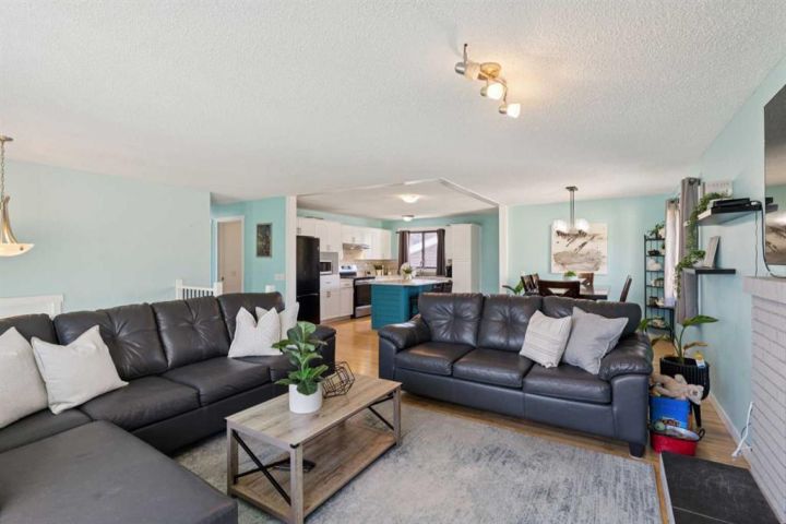 Welcome to this beautifully maintained bi-level home in the sought-after community of Glenbow—where comfort meets style and functionality. Thoughtfully updated with modern finishes, this inviting property is perfect for families who value space, convenience, and classic charm. Upstairs, the bright and airy WHITE KITCHEN boasts gleaming QUARTZ COUNTERTOPS and a clever SPICE DRAWER, making everyday cooking a breeze. The adjacent living room offers a warm and welcoming atmosphere, centred around a cozy WOOD-BURNING FIREPLACE—perfect for relaxing evenings. Stay comfortable year-round with CENTRAL AIR CONDITIONING. The main level features three bedrooms, including a spacious primary suite with a private 3-piece ENSUITE and TILED SHOWER. Major updates such as a NEW ROOF, HOT WATER TANK, and FURNACE offer added peace of mind and long-term value. The FULLY FINISHED SUNSHINE BASEMENT is filled with natural light and provides flexible living options with a large REC ROOM, fourth bedroom, 3-piece bathroom, laundry area, storage space, and a COLD ROOM—ideal for guests or growing families. Step outside to enjoy the landscaped backyard, featuring a DECK, PAVING STONE PATIO, and BUILT-IN STORAGE BENCHES—perfect for entertaining or relaxing in your private outdoor space. The OVERSIZED DOUBLE DETACHED GARAGE with LANE ACCESS offers ample room for vehicles, tools, and hobbies. All this, just minutes from schools, parks, shopping, and Cochrane’s beautiful pathway system. This move-in-ready home blends location, lifestyle, and lasting value—don’t miss your opportunity to call it yours!