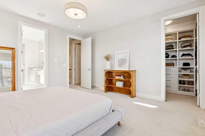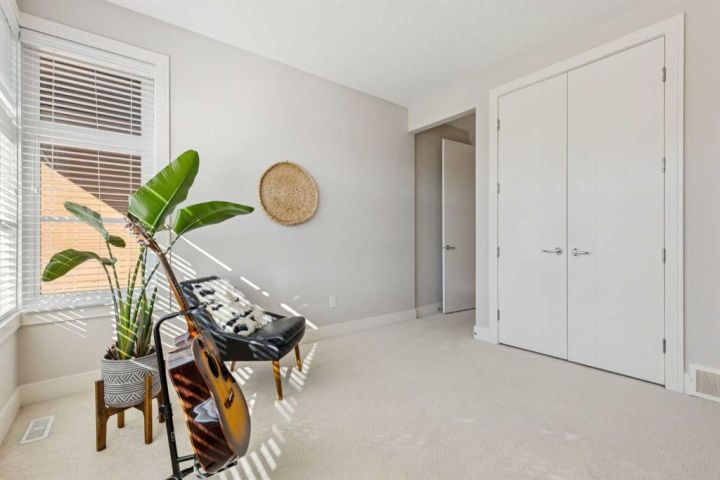 This inner-city infill delivers nearly 3,000 ft² of beautifully designed living space and a rare attached front double garage. Thoughtfully finished with exceptional soundproofing and QUALITY MATERIALS, it’s built for entertaining and everyday comfort. Step inside to 10-ft ceilings, wide-plank hardwood, and a bright, open plan with glass railings and large windows. At the centre of the home, the kitchen impresses with JennAir appliances, a 5-burner gas cooktop, an oversized island with seating, abundant drawer storage, and a dedicated beverage bar with under-counter fridge and shelving, equally suited to morning espresso or evening pours. The spacious dining area flows into the living room, where a two-way fireplace creates a cozy focal point. A walk-in pantry adds storage, while a practical rear mudroom keeps everything organized. Upstairs are three generous bedrooms with custom closet organizers. The luxurious primary retreat features a walk-in closet and a spa-inspired 6-piece ensuite with steam shower, double vanity, and jetted tub. The second-floor laundry room includes a sink and cabinetry for everyday convenience. The lower level expands your living space with a family room, full bathroom, and a versatile guest room with a sizeable walk-in closet. Notable upgrades include built-in speakers throughout, a double-insulated garage, oversized water heater, central air conditioning, rough-in for central vac, and new shingles in 2023. With quick access to downtown, a nearby off-leash dog park, and the boutiques and dining of Marda Loop, this is a rare opportunity on one of Bankview’s signature streets, celebrated for its charm and convenience to the inner city. Schedule your private showing today.