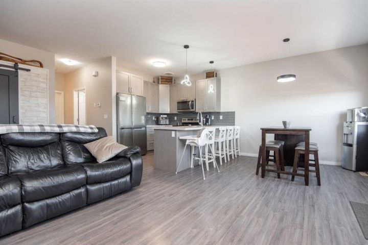 Welcome to your next move in the beautiful and growing community of Penhold. Built in 2018, with 1396 sq ft of total living space, this modern and airy bi-level town home offers the perfect blend of comfort and style. With 3 bedrooms and 2 bathrooms, the home features a bright open-concept layout accented by fresh, neutral tones and large windows that fill the space with natural light. The kitchen, with its stainless steel appliances, gleaming tile backsplash, and easy-to-maintain cupboards, flows seamlessly into the surrounding living areas, creating a warm and inviting atmosphere that is ideal for both relaxation and entertaining. Enjoy durable laminate flooring throughout the main living spaces and soft carpeting in the bedrooms for added comfort. Outside, you’ll find a fully fenced back yard and comfortably sized deck—perfect for kids, pets, or summer BBQs—and convenient off-street parking. Backing schools and the Multiplex is the final cherry on top for this move-in-ready home. Whether you’re a first-time buyer, downsizer, or investor, this move-in-ready home combines modern design with practical living in a friendly community.
