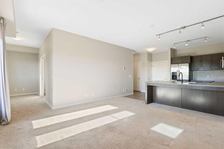 Beautifully maintained top-floor 1 Bedroom + Den in the adult (18+) Kincora Summit. This quiet, well-managed complex offers a calm and comfortable setting with beautifully kept grounds and excellent maintenance throughout. The home features 9’ ceilings, an open layout and 670 sq ft of well designed living space. A standout feature of this home is the large balcony overlooking the courtyard, making it the perfect place to relax or BBQ (gas hookup on balcony) The kitchen includes stainless-steel appliances, a breakfast bar, and plenty of storage. The spacious bedroom offers a walk-through closet and 4-piece cheater ensuite. The den is a great added touch, with sliding glass doors for added privacy. This home Includes one titled underground parking with assigned storage and is conveniently located close to the elevator. Kincora Sumit is close to shopping, restaurants, and major routes.
