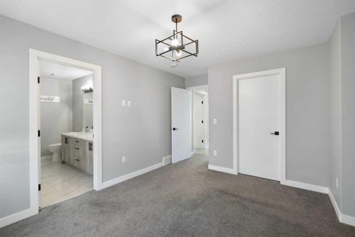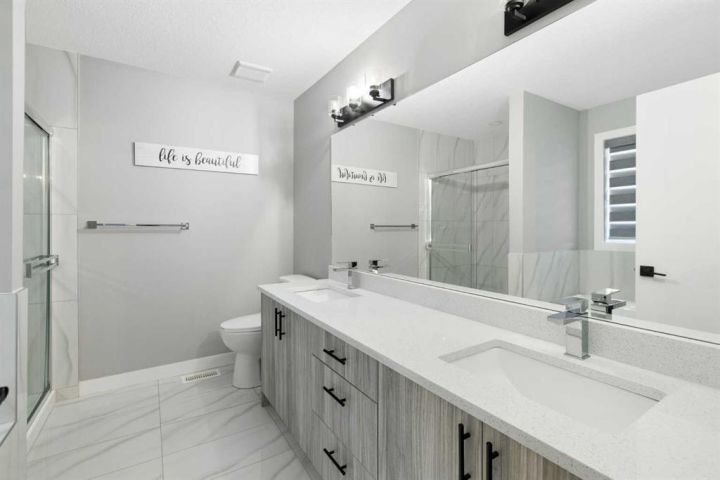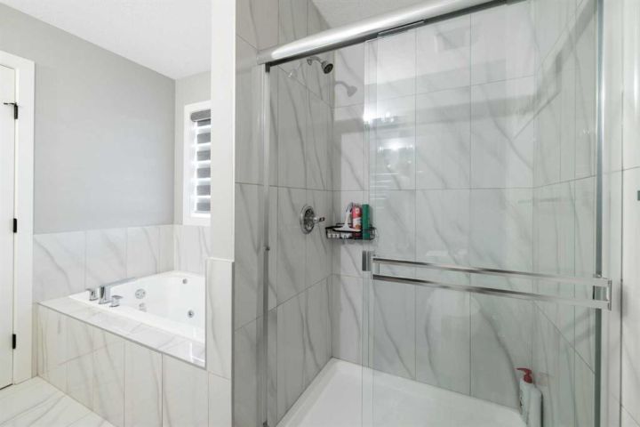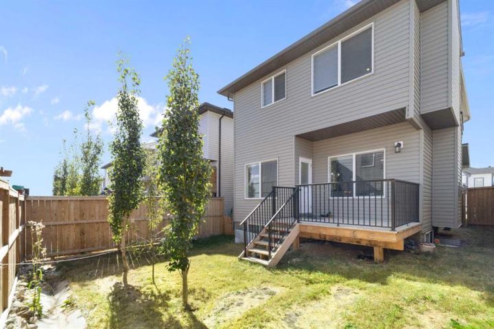 Experience elevated living in this stunning former show home by Sunview Custom Homes. Located just steps from George Freeman K-9 School, this home combines modern design, exceptional craftsmanship, and everyday functionality. From the moment you enter, you’re welcomed by high ceilings, bright natural light, and modern high end finishes that set the tone for the entire home. The open-concept main floor features a chef-inspired kitchen with two-toned European cabinetry, white quartz countertops, high-end stainless steel appliances, and a large central island that’s perfect for entertaining or family gatherings. The adjoining living and dining spaces are accented by a cozy gas fireplace, 9’ ceilings, and oversized windows with premium coverings. Step outside to enjoy the back deck, ideal for year-round BBQs and relaxing evenings. A walk-through pantry, powder room, also with quartz countertops, and luxury vinyl plank flooring complete the stylish and functional main level. Upstairs offers three spacious bedrooms, including a primary suite with a walk-in closet, 5-piece ensuite with jetted tub. A bright bonus room adds the perfect space for family movie nights or quiet reading, while upstairs laundry keeps things convenient. The basement is ready for your ideas - already framed for two additional bedrooms or office space and featuring 9’ ceilings and a separate entrance, offering potential for future development (secondary suite subject to municipal approval and permitting). This home blends luxury, comfort, and practicality - truly the perfect place for you to LOVE WHERE YOU LIVE! Please note: Pre-sale home inspection done, report available on request.