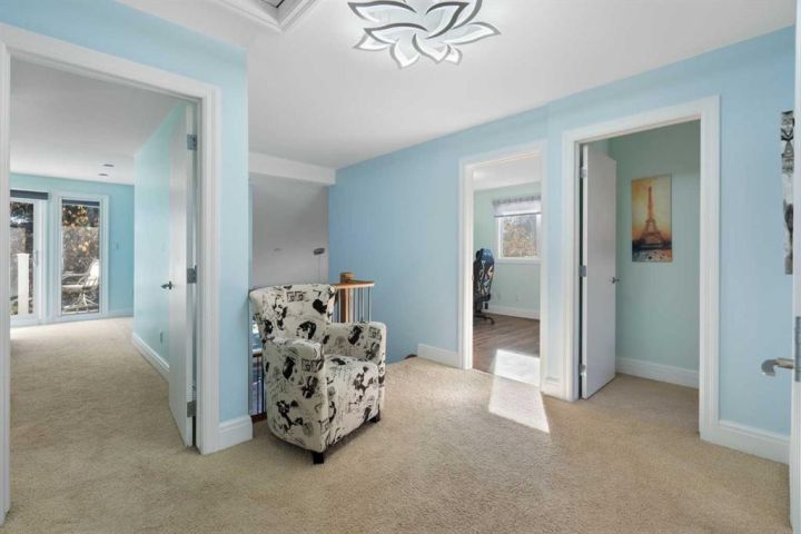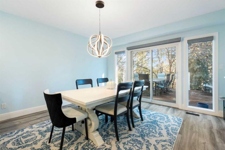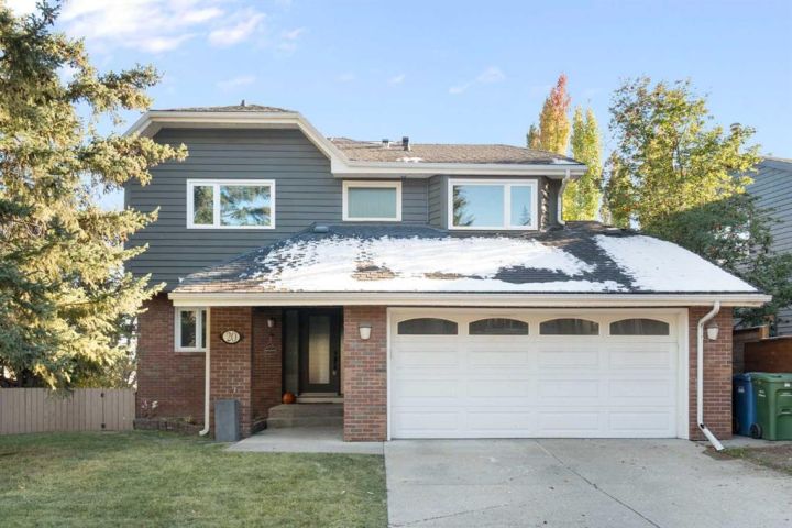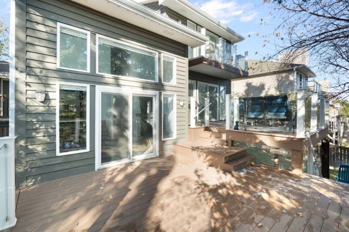 Welcome to Strathcona Park – one of Calgary’s most established and sought-after Southwest communities. Known for its quiet, tree-lined streets, family-friendly parks, and convenient access to downtown, this neighbourhood combines natural beauty with urban ease. Top-rated schools, walking trails, and proximity to shops and amenities make Strathcona Park a perennial favourite for those seeking a true sense of community. This 4-bedroom (upstairs), 3.5-bath home features a unique layout, thoughtful renovations, and seamless indoor-outdoor living with extended spaces on every level. The primary suite includes a cozy fireplace, a private balcony with downtown views, and a 4-piece ensuite, creating a true retreat. On the main level, you’ll find a fully renovated kitchen with Café appliances, custom cabinetry, a striking tile backsplash, and a large peninsula island with eating bar—perfect for everyday living and entertaining. The kitchen overlooks a formal dining room complete with a built-in hutch, leading out to one of four outdoor decks and balconies that capture both sunlight and scenery. The south-facing backyard is beautifully landscaped with mature trees, offering privacy and tranquility. Enjoy evenings on the composite decks with glass railings, or unwind on the covered exposed aggregate patio—an ideal spot for a hot tub. Additional features include a double attached garage with epoxy flooring, a stylish mudroom and laundry area, and a main-floor office/flex room that overlooks the vaulted living room with a wood-burning fireplace and another walkout deck. The split-level walkout design provides an abundance of space, including a renovated lower-level recreation area with wet bar, full fridge, dishwasher, and a new 3-piece bathroom—perfect for guests or gatherings. This home is also equipped with solar panels, dual furnaces, and central A/C, ensuring comfort and efficiency year-round. A home filled with many inviting spaces for entertaining and family enjoyment, blending character, versatility, and modern upgrades throughout. Don’t miss this incredible opportunity to make this Strathcona Park gem your new home.