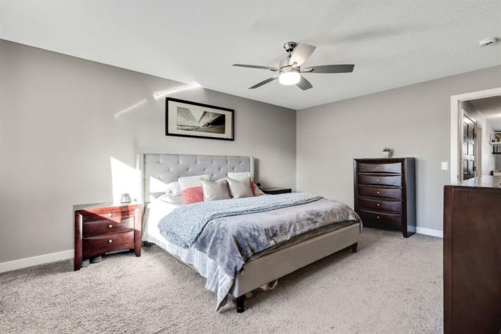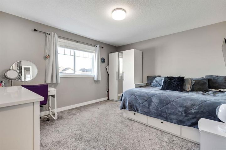 This thoughtfully laid-out home features 4 bedrooms – 3 upstairs and 1 downstairs – along with a spacious bonus room. The bright, open-concept main floor is ideal for entertaining, featuring a modern kitchen with stainless steel appliances, granite countertops, solid wood cabinetry, gas stove, kitchen island, and a generous dining area. The living room includes a fireplace, creating a warm and inviting atmosphere. A 2-piece powder room, functional mudroom with walk-through pantry complete the main level. Upstairs with the 3 bedrooms features a laundry area which makes laundry breeze, along with a bonus room (currently used as a bedroom). Hunter Douglas blinds throughout the home. Downstairs, the fully developed basement offers a large family room, a 4-piece bathroom, and a large private bedroom — great for guests, teens, or multigenerational living. Step outside to a low-maintenance backyard with a tiered deck and pergola, ideal for relaxing or entertaining. The double attached garage (18’ x 23’5”) includes storage space. Located in a family-friendly neighborhood close to parks, walking paths, and amenities, this home checks all the boxes.