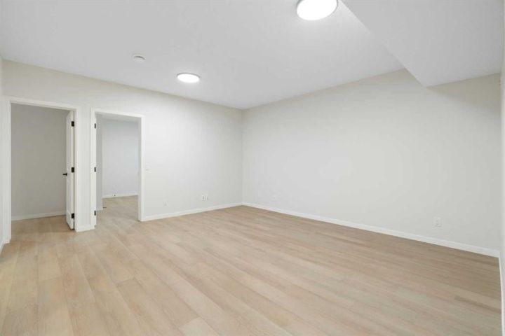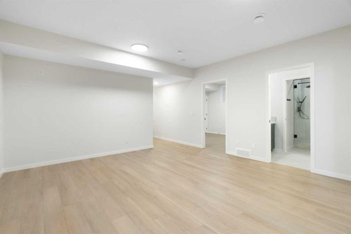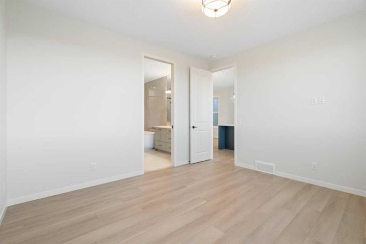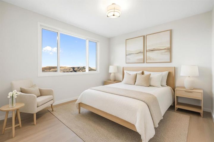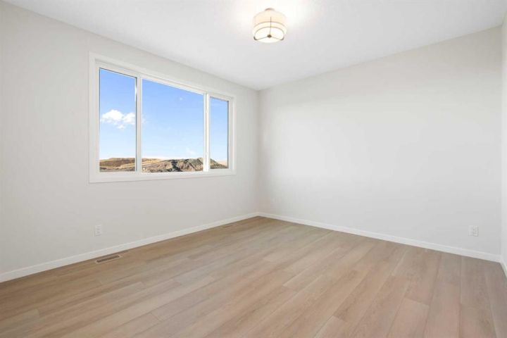 Welcome to 147 Marmot Grove NW, where refined design meets relaxed luxury in the heart of Glacier Ridge - one of NW Calgary’s most sought-after new communities. This home isn’t just a place to live; it’s a lifestyle. Think quiet morning coffee overlooking the environmental reserve, golden hour dinners on the patio with no neighbours behind, and the ease of single-level living that still offers space for family, guests, and entertaining. From the moment you step inside, light pours through soaring vaulted ceilings that crown the open-concept main floor. The living, kitchen, and dining areas flow together effortlessly, creating a sense of airiness and connection. Every detail feels elevated, from the 8' interior doors to the luxury vinyl plank flooring that stretches seamlessly throughout. At the center of it all is a chef’s kitchen designed for both beauty and purpose. Two-toned cabinetry in taupe and dark grey, Delta champagne bronze hardware, and a custom hood fan set a rich, modern tone. The oversized island is not only a gathering place - it’s brilliantly functional, with banks of deep drawers for organized, easy-access storage. A farmhouse sink, appliance garage, and six-burner gas range complete the culinary experience, while direct access to the rear patio invites effortless indoor-outdoor living. The living room feels warm yet sophisticated, anchored by a fully tiled electric fireplace - a natural focal point for cozy nights in or weekend gatherings. Just off the main area, the primary suite is designed as a true retreat - it’s connected to everything you need: a walk-in closet, laundry area, and a spa-inspired ensuite that feels straight out of a boutique hotel. Enjoy a custom tiled shower with a rainfall head and wand, a soaker tub, quartz countertops, and walls wrapped in elegant tile. Every finish, every fixture whispers “relax, you’re home.” Downstairs, the fully developed basement extends your living space beautifully with three additional bedrooms, a full bath, and a versatile rec room - perfect for a home gym, movie nights, or a cozy guest retreat. Outside, the stone and Hardie Board exterior offers timeless curb appeal, while the great-sized yard and peaceful backdrop of the environmental reserve create the kind of privacy and natural connection that’s rare in the city. The community of Glacier Ridge offers rolling landscapes, wide open skies, and thoughtfully planned streetscapes. You’ll find parks, walking paths, playgrounds, and new amenities taking shape all around you - just minutes from established conveniences, yet surrounded by quiet and space. Every inch of this sprawling bungalow is a testament to thoughtful design and modern living. It’s a home that celebrates both beauty and function - perfect for those who want to live stylishly, comfortably, and connected to nature. Experience the feeling of home, elevated. Schedule your private showing today.