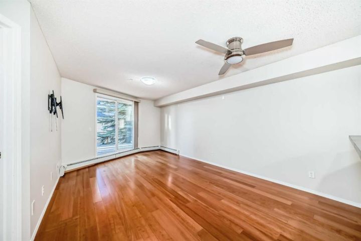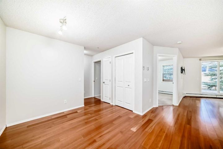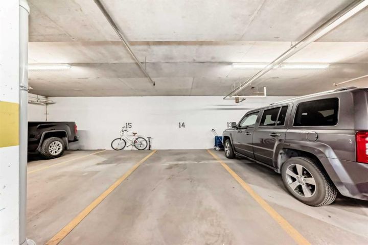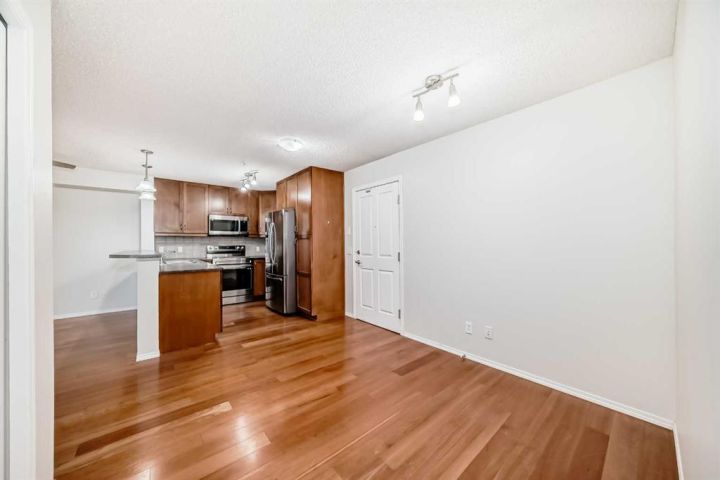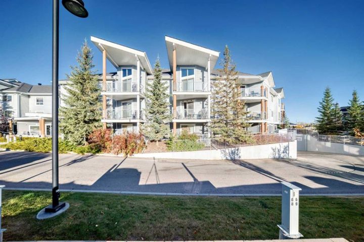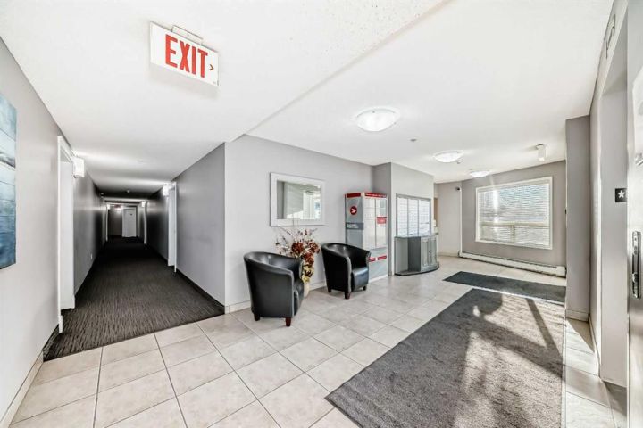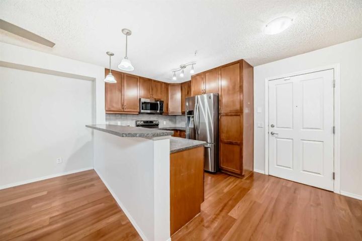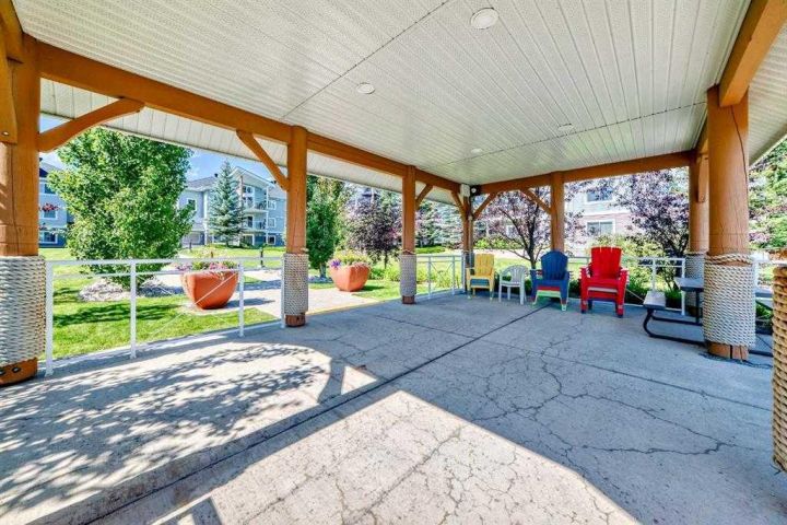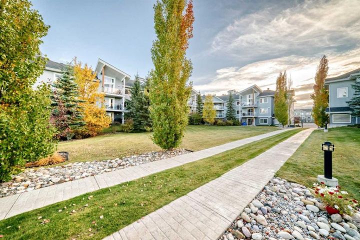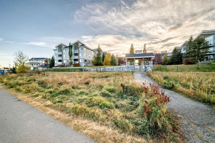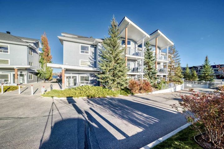 Location, location, location! This newer low-rise condo offers the perfect blend of comfort and convenience. Situated on the main floor, this spacious two-bedroom unit features an open concept from the kitchen to the living and dining areas. The kitchen is highlighted by wood cabinetry that extends to the ceiling for added storage, an L-shaped island with eating bar, stainless steel appliances including a newer built-in microwave, stove, dishwasher (July, 2025), and a large dining space adjacent to the kitchen. Sliding patio doors lead to a generous southwest-facing covered deck with a gas outlet. With over 800 square feet of living space, the unit is designed for both style and function. Hardwood flooring runs through the kitchen and living areas, while the bedrooms feature cozy carpet and the bathroom is finished with tile. The master bedroom offers a walk-through closet with access to the four-piece bathroom, while the second bedroom on the opposite side of the unit is ideal for guests or a home office. Additional features include in-suite laundry (newer washer & dryer replaced in July), two parking stalls—one underground (#14) and one surface (#58)—as well as extra storage downstairs(#63). The building grounds are beautifully maintained and feature a gazebo and outdoor spaces with views of the lake. Residents enjoy access to a fitness room (3rd floor), library/puzzle room (2nd floor), and secure gated entry to the lake. Seasonal highlights such as fireworks over the lake, a holiday light festival, and sleigh rides in John Peak Park are right at your doorstep. This exceptional location is just minutes from the Chestermere library, grocery stores, restaurants, coffee shops, the dog park, and offers quick access to Highway 1 and Calgary (10 mins away) Whether you’re looking for an investment opportunity or a place to enjoy the benefits of lake access, this condo is an outstanding choice.