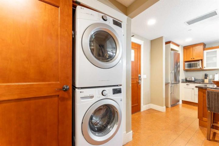 Step into mountain living at its finest with this spacious two bedroom lock-off suite at Solara Resort & Spa. After a day exploring Canmore’s endless trails, rivers & slopes, return to a space designed for both comfort & connection. The gourmet kitchen features sleek two-tone cabinetry, granite counters, a generous island, imported cork flooring & stainless steel appliances. Everything you need to prepare & enjoy meals. Gather around the dining table for six, then sink into the living room where a plush sofa (converting to a queen bed) faces a glowing fireplace, setting the perfect alpine mood. Step onto one of two private balconies to savour your morning coffee or stargaze at night against a backdrop of the Rockies. When it’s time to recharge, unwind in the spa-inspired bathroom before retreating to bed for a restful night’s sleep. The popular lock-off design allows one bedroom to transform into a self-contained hotel-style suite with its own access to the main corridor. This smart design is ideal for hosting family and friends, or generating additional rental revenue. Resort amenities complete the experience: dive into the indoor pool, soak in the hot tub, rejuvenate at One Wellness Spa & Fitness Centre, or enjoy a drink and a meal at Axis Bar & Kitchen. MainSpace event venue and Epic Liquor are just steps away, while heated underground parking and secure storage add peace of mind. Zoned for nightly rentals, this suite is both a lucrative investment and a personal mountain retreat; blending adventure, relaxation & the comfort of a world-class resort. The list price includes GST. Consult an Accountant to discuss GST deferral options.
