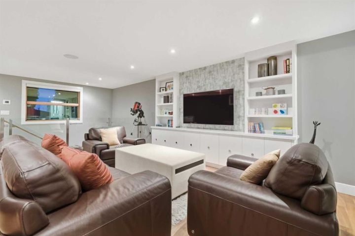 OPEN HOUSE SUNDAY, OCTOBER 19TH FROM 1-4 PM. Step into a home where elegance meets comfort in sought-after South Calgary. This stunning estate residence situated on a 37’x125’ lot spans over 4400 sq ft across 4 thoughtfully designed levels, offering 3+1 bedrooms, 3 full baths & 2 half-baths. Every corner has been meticulously crafted to create a living space that is both luxurious & inviting, blending modern style with practical functionality. The main level immediately impresses with soaring ceilings & abundant natural light, creating a bright, open atmosphere. The living room is a true centerpiece, anchored by a striking feature fireplace & refined finishes that add warmth & character. The chef-inspired kitchen complements this space beautifully, with quartz countertops, a generous central island perfect for meal prep or casual dining & high-end appliances designed to make entertaining effortless. The dining & family areas flow seamlessly from the kitchen, offering a natural setting for both everyday living and gatherings. A private office with elegant built-ins is tucked away just off the foyer - the perfect work from home space. Upstairs, the primary suite is a private retreat featuring generous proportions, a private balcony, cozy sitting area, huge walk-in closet & spa-like ensuite, create a peaceful atmosphere perfect for rest & relaxation. Additional bedrooms are spacious & thoughtfully designed, offering ample closet space, and flexible layouts that suit family life. Completing the second level is a 4 piece bath. The third level hosts a large family/media room, convenient laundry room with sink & storage plus a 2 piece powder room. There is also access to a rooftop patio, affording exceptional year round outdoor living. The fully finished basement adds versatility with a large game room & wet bar – perfect for game or movie night. An exercise room, fourth bedroom & 4 piece bath are the finishing touches to the basement. The private backyard features a patio with built-in BBQ & smoker, natural gas patio heater & additional deck with pergola - an ideal setting to entertain or unwind. This home is equipped with advanced smart technology, including Ring doorbells & cameras, coded door locks & a security system providing convenience, safety & peace of mind. A heated triple detached garage with ceiling storage offers ample room for vehicles & equipment, combining practicality with luxury. Located in a vibrant community with parks, top-rated schools, shopping, dining & recreational amenities nearby, this home offers a lifestyle of convenience & sophistication. From architectural details to premium finishes, every aspect has been thoughtfully executed to deliver an exceptional living experience. This residence represents a rare opportunity to own a meticulously crafted home in one of Calgary’s most desirable neighborhoods. With its combination of elegant design, functional layout & luxurious features, it truly embodies the best in modern living.
