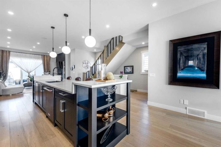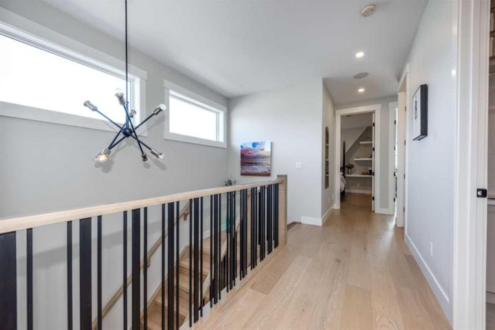 OPEN HOUSE SATURDAY OCTOBER 18TH FROM 1:00PM TO 4:00PM - LIKE NEW! This architecturally designed detached home offers over 3,400 sqft. of refined space, blending clean modern design with warmth and everyday functionality. Positioned directly across from Grafton Park and just steps from St. Andrew and Glamorgan Schools, it provides the perfect balance of community and convenience. The main level features 10-ft ceilings, oversized windows, and a bright, open layout. The chef’s kitchen includes sleek flat-panel cabinetry, premium black stainless-steel appliances, a gas cooktop, wall oven, and a large quartz island—ideal for entertaining. The living room is anchored by a full-height tiled fireplace and custom built-ins, while a dedicated workspace and custom mudroom add practical functionality. Upstairs, the primary retreat impresses with a private balcony, spa-inspired ensuite featuring a steam shower, freestanding tub, double vanities, heated floors, and a large dressing area with makeup station. Two additional bedrooms offer walk-in closets and share a double-vanity bathroom, while the upper laundry room includes custom cabinetry and a utility sink. The finished lower level offers 9-ft ceilings, a media lounge, wet bar with beverage fridge, fourth bedroom, and full bath—perfect for guests or family gatherings. Extra-wide staircases and hallways enhance the home’s sense of space and flow. Ideally situated, this home is within 15 minutes walking distance to Mount Royal University and the vibrant Currie Barracks area, 5 minutes’ drive to Signal Hill Shopping Centre, and a quick 10-minute commute to downtown Calgary. Its central yet quiet location provides exceptional accessibility to parks, pathways, schools, and major amenities. Set in one of Calgary’s most desirable communities, this residence delivers a rare combination of thoughtful design, craftsmanship, and lifestyle. Homes of this calibre in Glamorgan are seldom available.