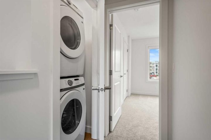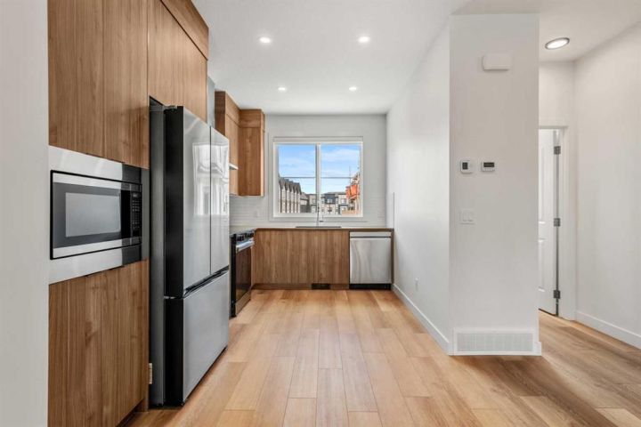 ***OPEN HOUSE Saturday and Sunday from 1pm to 4pm, Stop by Showhome for Access*** Welcome to this stunning, award-winning new build by Trico Homes, offering two bedrooms and 2.5 bathrooms along with over $7,440 in upgrades. Located in the vibrant and family-friendly community of Seton, this thoughtfully crafted townhome blends modern design with everyday functionality. Inside, you'll find a beautifully finished interior highlighted by a MID-CENTURY MODERN Design Palette and luxury vinyl flooring throughout the main level, contributing to a clean and contemporary aesthetic. Zebra blinds have been installed on all windows, offering both style and privacy. The entry level includes a double attached tandem garage, providing ample space for parking and storage. On the main floor, an open-concept layout connects the dining area, kitchen, and living room, creating an ideal space for both daily living and entertaining. The kitchen is equipped with ceiling-height cabinetry, a Silgranit undermount sink, quartz countertops, brand-new stainless steel appliances, and a functional kitchen island. A striking light fixture defines the dining area, while the living room opens directly to a vinyl deck, offering a comfortable outdoor space to relax and unwind. Upstairs, you’ll find two generously sized bedrooms, each complete with its own 4-piece ensuite bathroom. These bathrooms are finished with full-height tiled showers and undermount sinks, adding an elevated touch to the design. This home is ideally situated within walking distance to a wide variety of amenities. Residents can enjoy the Seton YMCA, which includes a swimming pool, fitness center, gymnasium, dance studios, an ice rink, and a public library. Nearby, you'll also find numerous restaurants, shops, and entertainment venues including Cineplex Seton and the South Health Campus hospital. Families will appreciate the proximity to Joane Cardinal Schubert High School, and the community will soon welcome a brand-new community center featuring an outdoor rink. Don't miss your chance to view - book a private showing today!