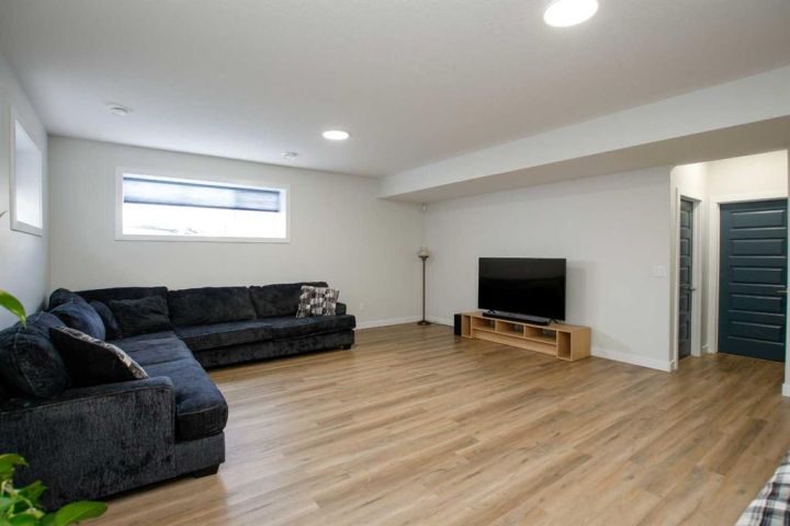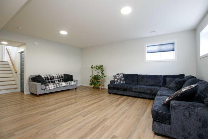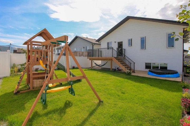 FULLY DEVELOPED 5 BEDROOM, 3 BATHROOM BI-LEVEL IN TIMBER RIDGE ~ LIKE NEW CONDITION & LOADED WITH UPGRADES ~ NO NEIGHBOURS BEHIND AND FACING A TREED GREEN SPACE & PLAYGROUND ~ Stylish exterior and a landscaped front yard offer eye catching curb appeal ~ A sub filled foyer with high ceilings that open to the upper level welcomes you to this well cared for home ~ The open concept main living space features high ceilings and vinyl plank flooring that create a feeling of spaciousness ~ The generous size living room has a large west facing window with park views that fills the space with natural light ~ Easily host large gatherings in the dining room that opens to the beautifully updated kitchen featuring ceiling height cabinets with crown moulding, full tile backsplash, quartz countertops, apron front sink with a window above, large island with storage drawers and an eating bar, stainless steel appliances and a wall pantry ~ Garden door access from the kitchen leads to the deck with a BBQ gas line, lower patio, and landscaped backyard ~ The primary bedroom can easily accommodate a king size bed plus multiple pieces of furniture, has a walk in closet with built in organizers and a 3 piece ensuite with a walk in shower ~ 2 main floor bedrooms are both a generous size with ample closet space and are conveniently located across from the 4 piece main bathroom ~ The fully finished basement with 9ft. ceilings and vinyl plank flooring throughout offers a generous size family room, 2 bedrooms, a 4 piece bathroom, laundry and ample storage space ~ Other great features include; custom built, original owner home, non smoking, pet free, water softener ~ Double attached garage is insulated, finished with drywall, and has a window for natural light ~ The backyard is fully fenced with vinyl fencing, landscaped with trees, shrubs and perennials, has back alley access, and no neighbours behind ~ Located in Timber Ridge, close to multiple parks, playgrounds, walking trails, schools, shopping, restaurants, and more all within walking distance ~ Pride of ownership is evident!