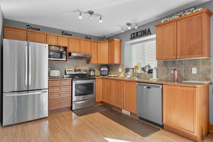 Spacious and well-maintained two-storey home in the desirable community of Luxstone. Offering over 2,400 sq. ft. of developed living space, this property includes six bedrooms—four on the upper level and two in the fully finished basement—ideal for large or multi-generational families. The main floor features an open-concept layout with a bright living room, functional kitchen, dining area overlooking the backyard, plus a powder room and laundry area, as well as a separate family room . Upstairs, the primary suite includes a walk-in closet and full 4-piece ensuite bathroom. The fully developed basement adds the two bedrooms, a large recreation room, and a 4-piece bathroom. Additional features include a double attached garage, newer mechanical updates, a fully fenced yard, and a recent mechanical inspection with all recommended repairs completed. Located two blocks from WH Croxford High School and within walking distance to parks, pathways, and the Bayside shopping plaza. Luxstone is a family-friendly neighbourhood with multiple green spaces, easy access to transit, and convenient proximity to Airdrie’s downtown and major commuter routes.