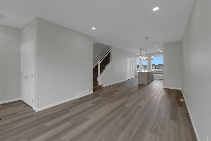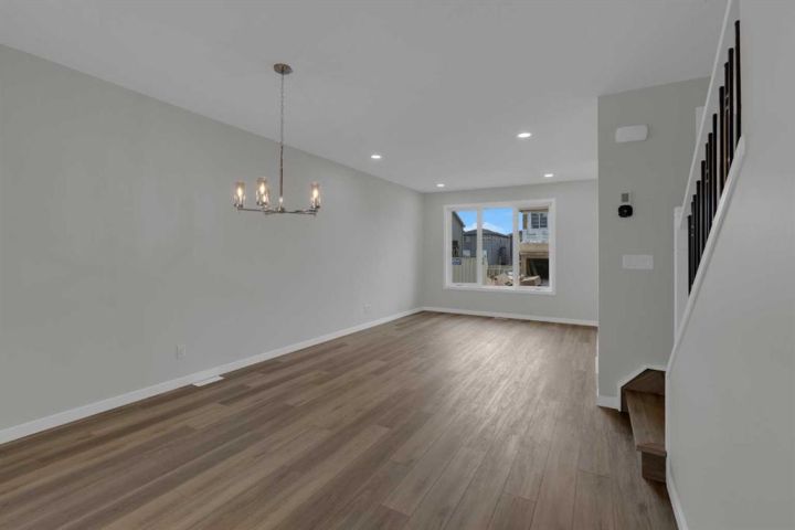 Move into your BRAND NEW home for Christmas! This gorgeous half duplex—the Wren by Excel Homes—is loaded w/upgrades, high end finishings & ready for quick possession. Perfectly situated in Airdries COBBLESTONE CREEK, residents can find sanctuary in Cobblestone's network of parks, paths & recreational amenities - with direct access & pathway connections to amazing Chinook Winds Regional Park & across the street from Airdries new rec Centre - tennis, pickleball & basketball courts - so many options to say active & socialize! Nearby schools have your covered from K to 9. The WREN showcases a contemporary open-concept main floor, ideal for entertaining and everyday living. Poured concrete walk ways & front porch will provide for lasting curb appeal. The chef-inspired kitchen, located at the rear of the home, overlooks the backyard and provides gorgeous, neutral, ceiling height cabinetry, drawers, and a full pantry. Upstairs, a striking black metal railing leads to a cozy central bonus room with vaulted ceilings, separating two generous secondary bedrooms from the private primary suite, which features a full ensuite and a spacious walk-in closet. All bathrooms have stone countertops! The upper floor also includes a convenient laundry & and family bath. This home includes a SIDE ENTRANCE to the basement, offers 9' ceilings, is drywalled and the electrical is also done. The utilities are nicely tucked at the rear of the home for easy development & more useable floor space. This home comes with an 18.8 x 22 CONCRETE parking pad, one tree & sod to front yard. There is also a gas line to the bbq at the rear. With over 35 years of experience, more than 15,000 homes built, and 75 awards for design and industry excellence, Excel Homes continues to deliver quality, innovation, and peace of mind—making the Wren a truly smart choice for your next move.