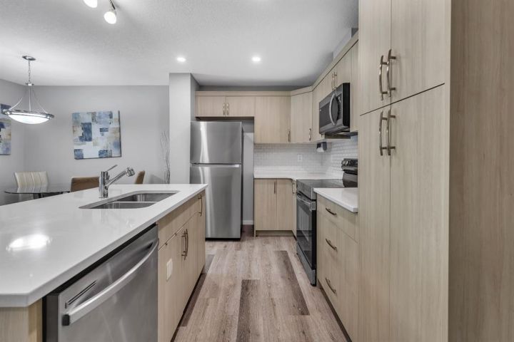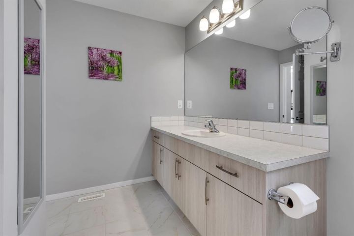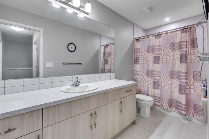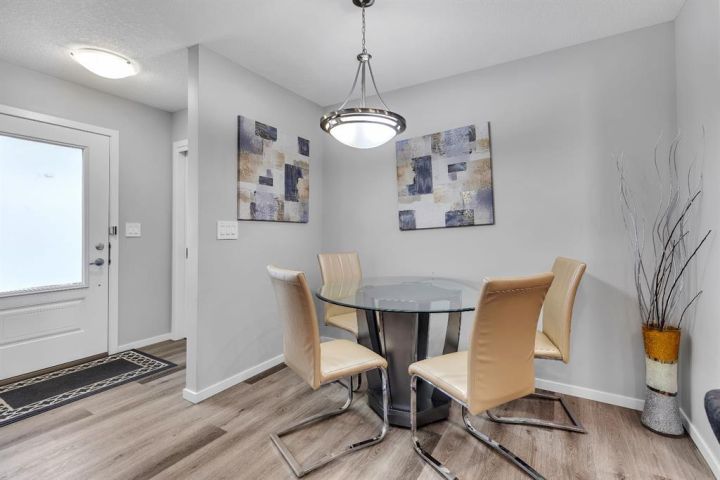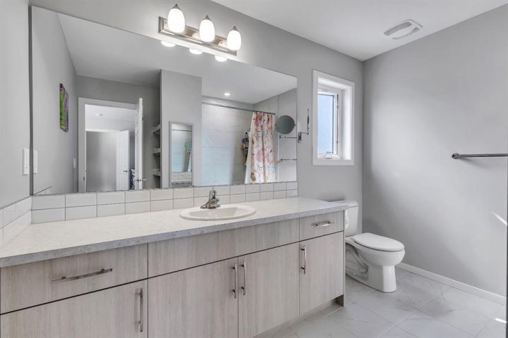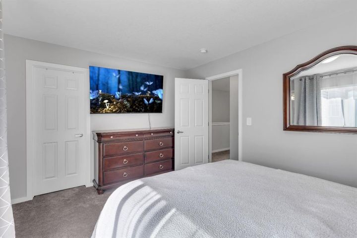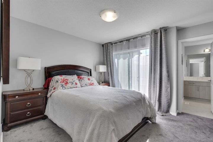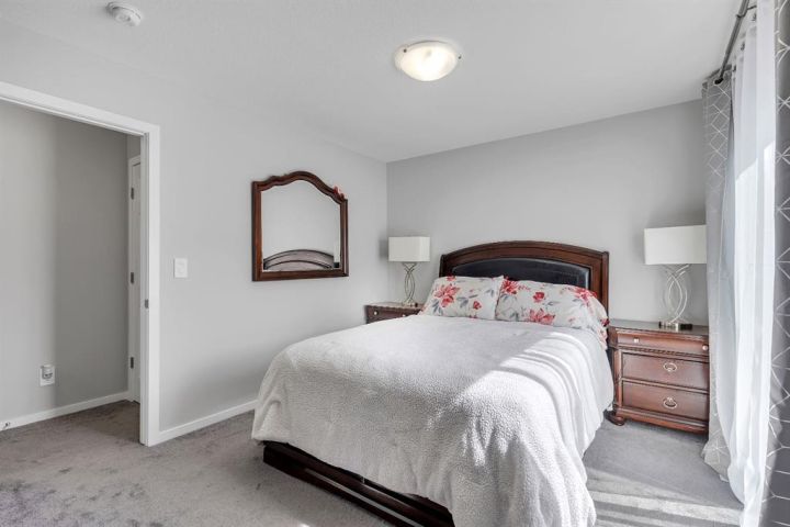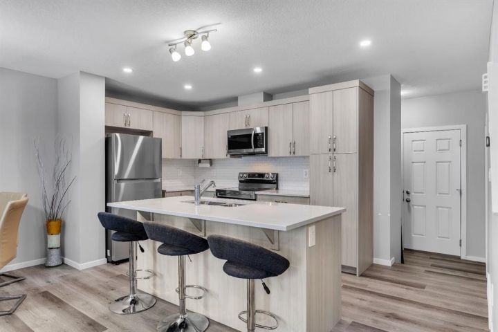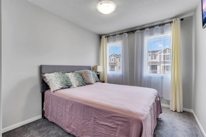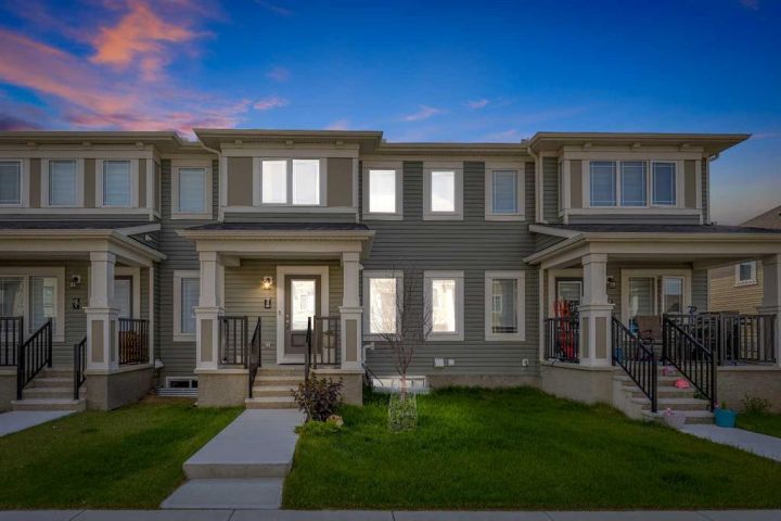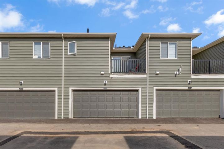 LOWEST-PRICED TOWNHOME IN AIRDRIE WITH 3 BEDS | 2.5 BATHS | DOUBLE CAR GARAGE | NO CONDO FEES – This 2022-built townhome in Southwinds, Airdrie SW offers the ideal combination of space, functionality, and location—with no condo fees and thoughtful design throughout. The home is east-facing, bringing in beautiful morning light through the front windows, while the west-facing private balcony off the primary bedroom lets you enjoy evening sunsets. The main floor features a bright living room at the front, a dining space, and a modern kitchen with quartz countertops, stainless steel appliances, a central island, and plenty of cabinet space. You’ll also find a 2-piece bathroom, a mudroom with built-in shelving, and a front entry closet for extra storage. Upstairs offers three generously sized bedrooms, including a primary suite with a huge walk-in closet, 4-piece ensuite, and direct access to the balcony. Two additional bedrooms, another full 4-piece bathroom, and convenient upper-level laundry complete the layout. The unfinished basement includes plumbing rough-ins for future development. A double attached garage with paved rear lane access, a welcoming front porch, and a family-friendly location close to Windsong Heights School, Chinook Winds Regional Park, playgrounds, and shopping make this a fantastic opportunity in one of Airdrie’s desirable newer communities.