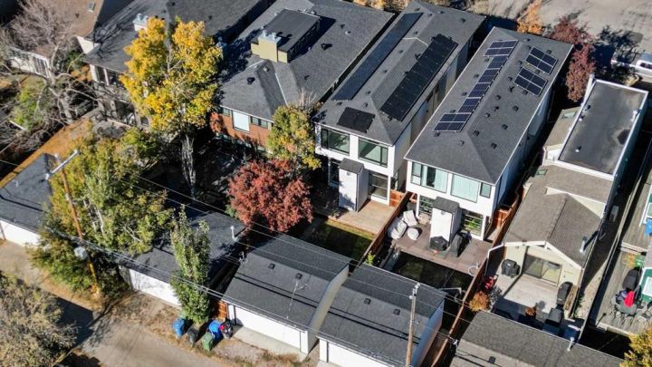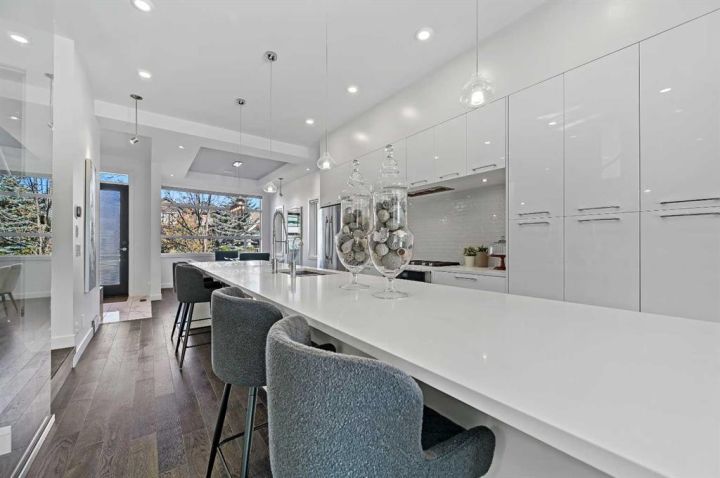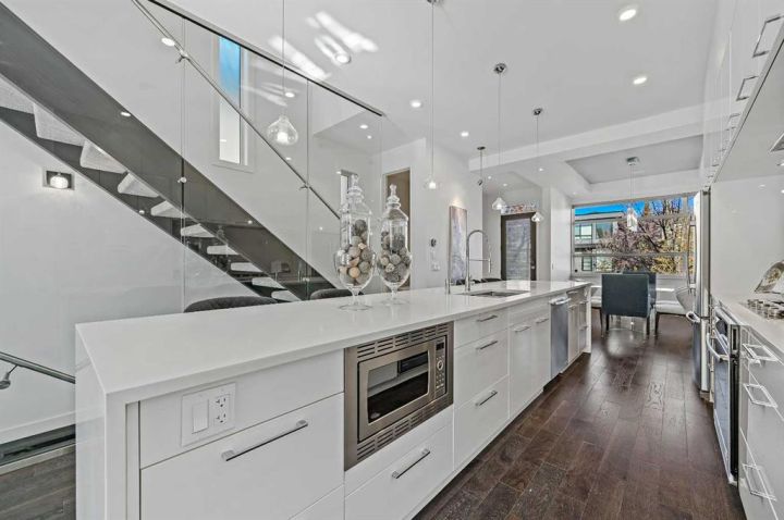 *** OPEN HOUSE SUNDAY, October 19, 2025 2-4PM *** This stunning modern home in West Hillhurst, designed and built by Deanmark Custom Homes, blends European-inspired architecture with the comforts of luxurious urban living. Every detail reflects quality, comfort, and thoughtful design — from the creative open-concept layout that maximizes space and natural light, to the oversized ceiling heights and use of modern, natural, and durable finishes throughout. The main floor features gleaming hardwood and a centerpiece kitchen with a gas cooktop, built-in convection oven, quartz countertops, custom cabinetry, and a large island perfect for hosting. The kitchen opens into a bright, south-facing family room with a tile-wrapped gas fireplace and flows effortlessly to the low-maintenance south backyard. A detached garage includes an EV fast charger, ideal for eco-conscious city living. Upstairs, the spacious primary suite is a serene escape with a walk-in closet and luxurious 5-piece ensuite featuring in-floor heating. Two more bedrooms, a 4-piece bath, and a laundry room with a sink complete the upper level. The fully finished basement is great for guests and entertaining — enjoy the wet bar with fridge and microwave, a 4th bedroom, and a spa-style bathroom with steam shower. Additional features include A/C, vacuflo, water softener, filtration system, and roughed-in basement in-floor heat. Energy-efficient 9.8 kW solar panels make this home future-ready. All of this in a prime location just minutes to downtown, the Bow River, and endless walking and biking paths. This home is a must see to appreciate the quality of the home.