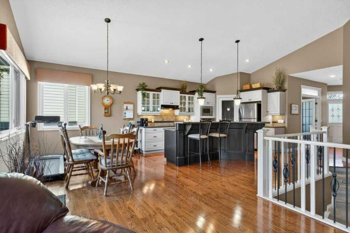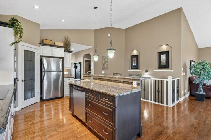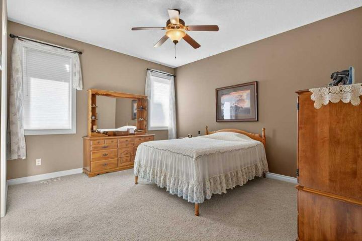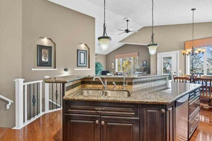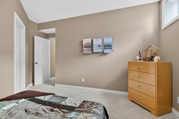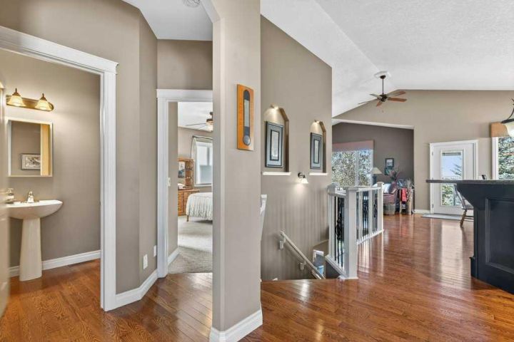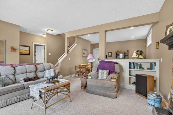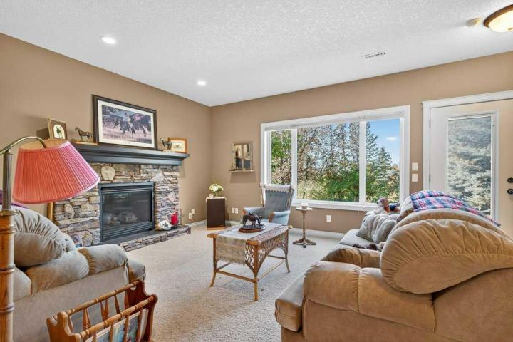 Downstairs, the fully finished walkout basement offers a large recreation area with a second gas fireplace, two generous bedrooms and a full bathroom. One of the bedrooms features French doors that open directly onto the outdoor patio.