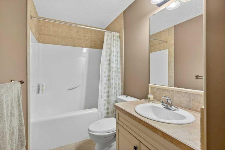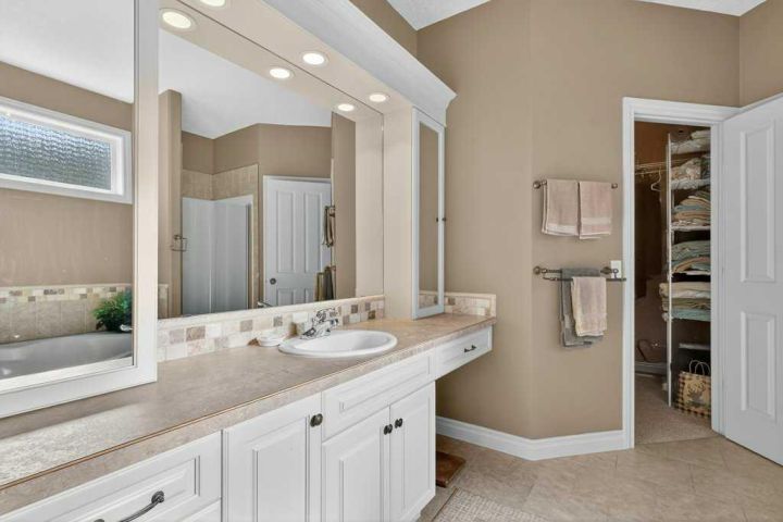 The primary suite includes a walk-in closet and an ensuite bathroom with a shower and large soaking tub. Conveniently, located just outside the bedroom is the main-floor laundry room for easy access.