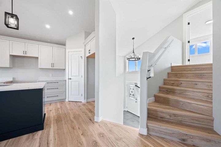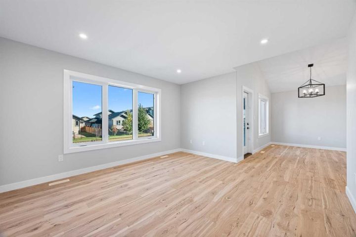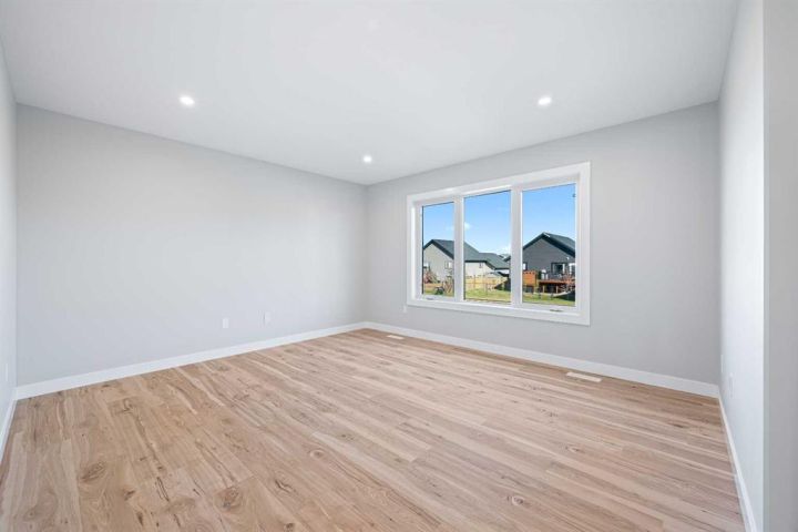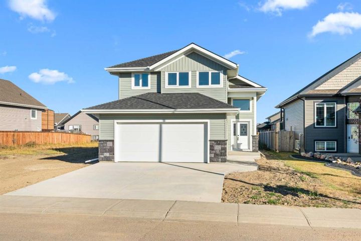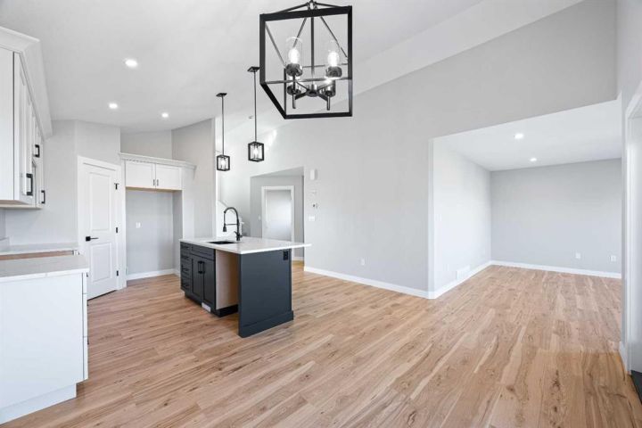 Location is usually top of mind when building a new home...This Saskatchewan side location is one of the best you will find- tucked inside a quiet crescent location with only localized traffic- you will love this non-busy street when backing out of your driveway!! Even more, you will love the green space that runs adjacent to your backyard and provides distance between you and neighboring homes. With the orientation of this home you can see the morning sunrise from your dining room. The home is everything you need- 1310 square feet above grade with a 22' by 24' attached garage. The master bedroom is conveniently located above the garage giving some separation between the main floor and the sleeping area in the Primary bedroom. The main floor features a vaulted ceiling through the kitchen and dining area, large island and a generous kitchen. The family room is open to the dining area and faces the backyard for maximum privacy and appeal. Added features: Upgraded flooring and kitchen cabinets an quartz countertops.