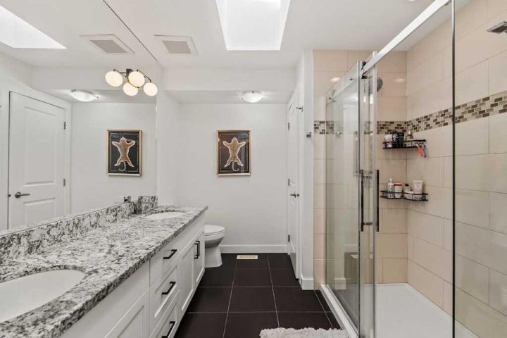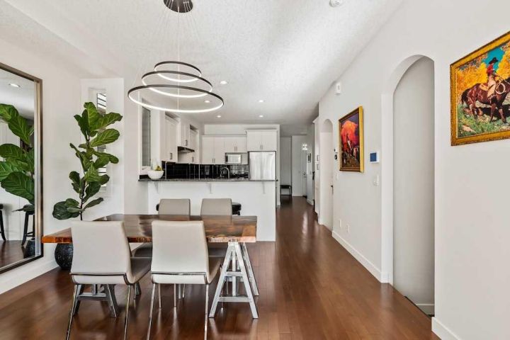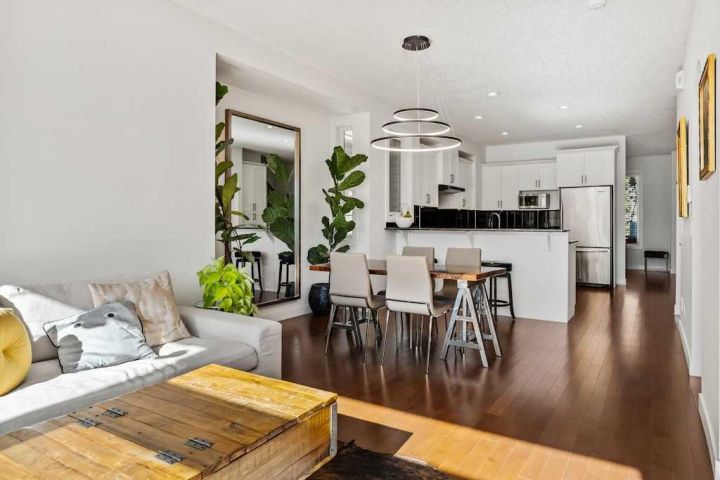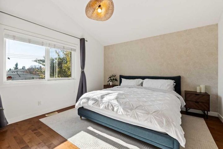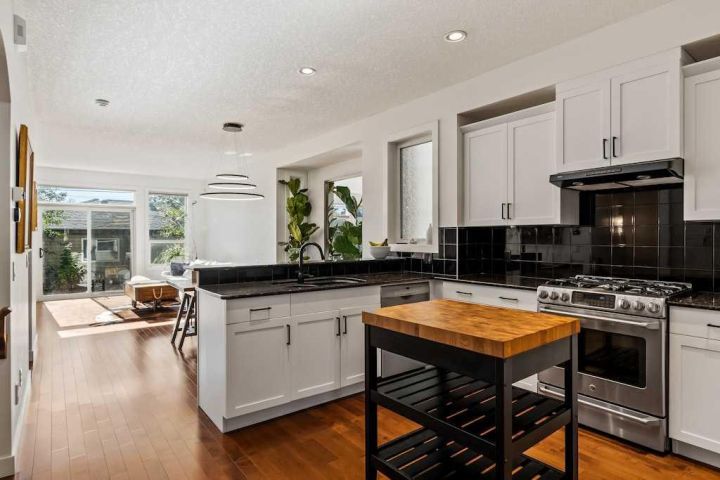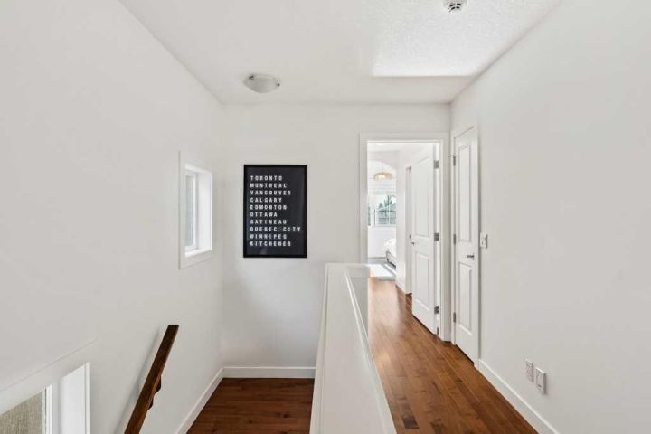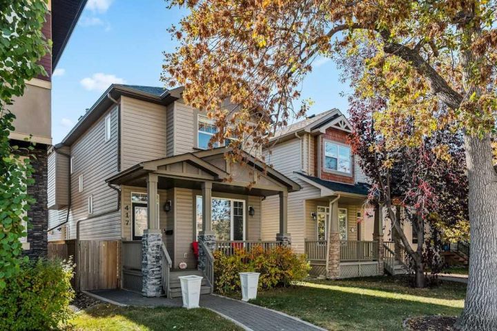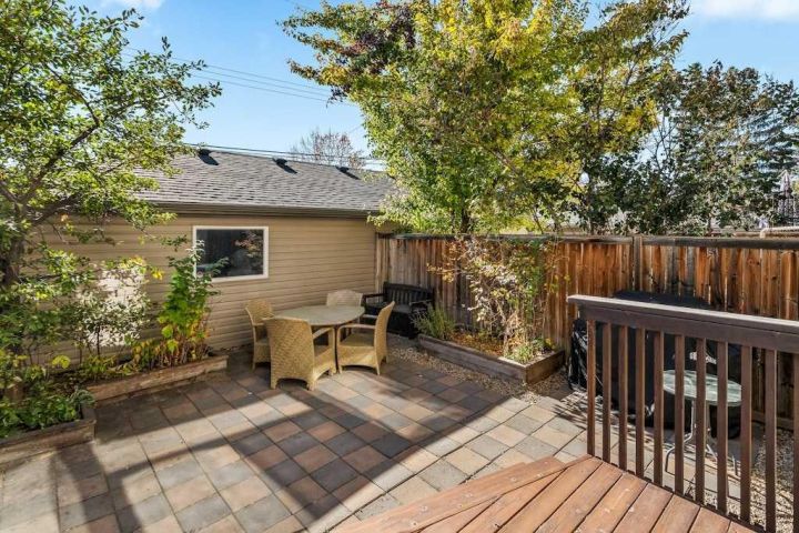 Open House - Saturday, October 18, 12:00pm - 2:00pm. On a quiet Windsor Park street, this tailored two-storey family home blends modern functionality with an edited, elevated finish—and lovely curb appeal to match. A lovely front yard frames the covered front porch—the perfect perch to sip a morning coffee and watch the world go by. The front entrance opens with maple hardwood and 9-ft ceilings and leads into a front living/flex room that sets up beautifully as a private office or reading nook, while a discreet side entry opens to a super-functional mudroom, keeping coats, strollers, and groceries out of sight. The kitchen is intentionally designed: a stainless-steel gas range with a designer hood fan, upgraded cabinetry, and a raised peninsula for quick breakfasts and extra prep. It opens to a dedicated dining area and a comfortable family room anchored by a gas fireplace and garden-facing windows—light, connection, and easy flow to the south-facing backyard, a true extension of the home. Thoughtfully landscaped with perennials and mature greenery, it offers both privacy and ease of care. A sunny upper deck flows onto the concrete patio, setting the stage for alfresco dinners, summer barbecues, and evening gatherings that linger under the stars. Upstairs, the primary suite feels quietly luxe with vaulted ceilings, a custom walk-in closet, and an ensuite with a double vanity and a glass walk-in shower. Two additional bedrooms are serviced by a stylish full bath, offering flexible spaces for guests, kids, or a second office. Downstairs, the unfinished basement is a valuable bonus—excellent storage today, or bring your vision and design a future rec room, gym, or guest space to suit your needs. Some of the notable update include: new vanity mirror and bathroom light fixtures (2025); freshly painted white cabinets (2025); new roof on the house and garage with Malarkey Legacy shingles (2024); oversized Goodman A/C (2024), smart thermostat (2024), furnace fan (2024), and smart doorbell (2024); stained back deck (2023); updated various light fixtures (2021). A double garage provides secure parking and storage. From here, your everyday is wonderfully walkable: Chinook Centre, Sunterra, Britannia Plaza, Sandy Beach, Stanley Park, cafés, and C-Train/bus routes are all close by. A polished inner-city home—refined where it matters, effortless where it counts.