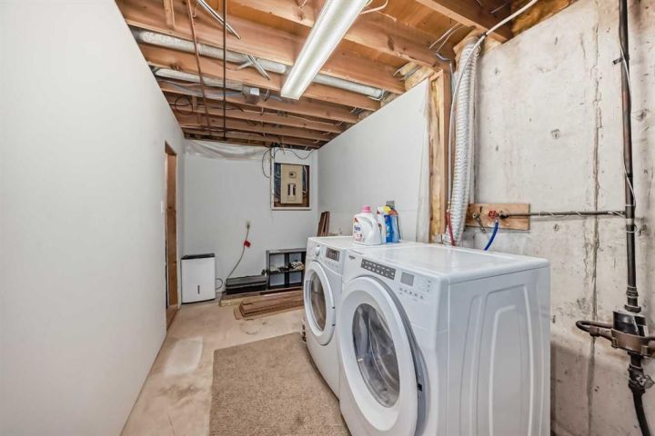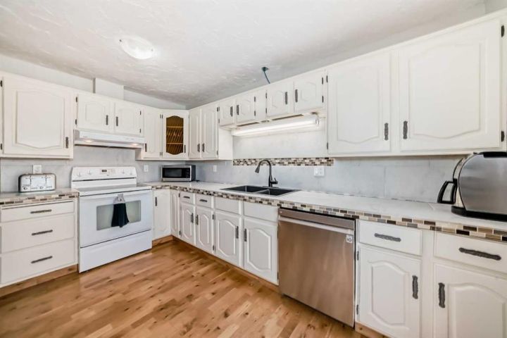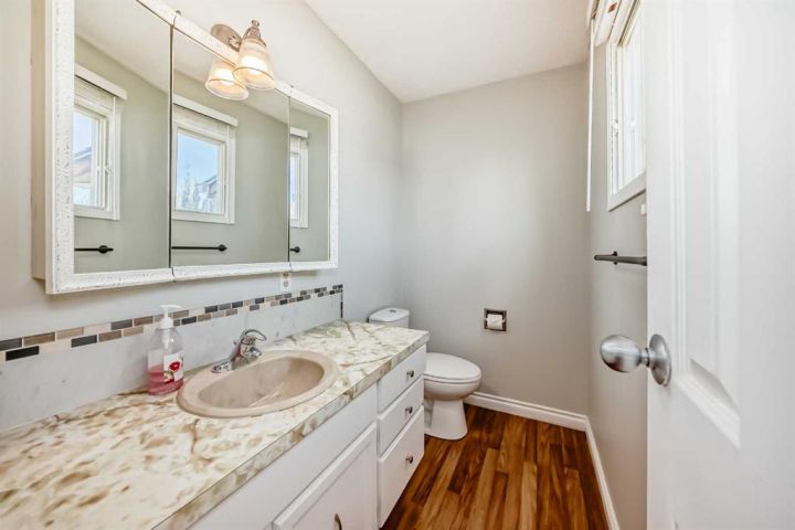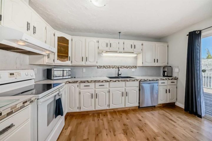 Welcome to this inviting bungalow style home that combines comfort, function, and convenience! Featuring 4 bedrooms and 2.5 bathrooms, this home is perfect for families or anyone looking for a spacious, move-in-ready property. The main floor offers a bright, welcoming layout with easy-care laminate flooring throughout, a generous size living room, and an eat-in kitchen designed for casual family meals and gatherings. The kitchen also offers patio doors to a large rear deck complete with aluminum railing. Downstairs, the fully finished basement provides plenty of additional living space—ideal for a family room, play area, or home office—along with a bedroom and full bathroom for guests or teens. Step outside to enjoy the large yard, perfect for kids, pets, or summer entertaining. A rear shed offers extra storage for tools, bikes, and more. Situated within walking distance to local schools, this home makes everyday living both easy and convenient.