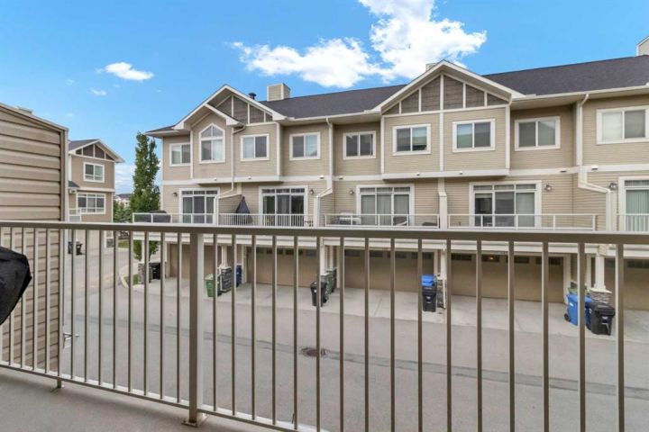Welcome to this stylish and well-appointed 2-bedroom townhome in the vibrant community of Skyview Ranch. Thoughtfully designed for modern living, this multi-level home offers exceptional comfort, functionality, and convenience, complete with an attached single garage and two private balconies. The bright and open main living area features a spacious layout with large windows, allowing for an abundance of natural light. The contemporary kitchen is equipped with sleek cabinetry, stainless steel appliances, and ample counter space, making meal preparation a pleasure. The adjacent dining and living areas flow seamlessly, perfect for entertaining or everyday living. Step out onto the first of two balconies to enjoy fresh air and sunshine—ideal for morning coffee or evening relaxation. Upstairs, you'll find two generous bedrooms, including a primary suite with beautiful transom windows and 4-pc ensuite. A full bathroom, convenient upper-level laundry, and ample closet space complete the upper floor. The entry level offers room for a home office or flex room and direct access to your attached single garage, providing both security and ease in all seasons. Located in a well-maintained complex close to parks, playgrounds, schools, shopping, and transit, this townhome offers a perfect opportunity for first-time buyers, young professionals, or investors. Don’t miss your chance to own a beautiful home in the growing and family-friendly community of Skyview Ranch. Book your private viewing today!
