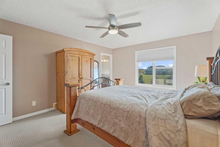 IMMACULATE FAMILY HOME BACKING ONTO GREEN SPACE — STEPS TO PARK & K-5 SCHOOL! Open house Sunday October 19th 12-2pm Perfectly suited for families, this beautifully maintained, move-in ready home is located on a quiet street just steps from a park and K-5 school — making school runs and outdoor play a breeze. Backing directly onto serene green space, enjoy unmatched privacy and stunning southwest-facing yard views. Inside, the main floor boasts soaring 9-foot ceilings and a versatile bedroom or office — ideal for working from home or accommodating guests. Upstairs, you’ll find three spacious bedrooms plus a massive bonus room perfect for a playroom, media room, or home gym. Car enthusiasts and hobbyists will love the oversized 23-foot-wide garage featuring a built-in workbench and fantastic mezzanine storage — plenty of room for vehicles, motorcycles, and all your gear. Step outside to a low-maintenance composite deck with aluminum railings, a beautifully landscaped yard, and a cozy firepit — perfect for family gatherings or relaxing evenings. A private gate offers direct access to the expansive green space behind. The unfinished basement is a blank canvas, ready for your personal finishing touches to add future living space and value. Additional highlights include central air conditioning, central vacuum, and an easy-care exterior designed for years of worry-free enjoyment. This home offers a rare combination of space, location, and low maintenance — all at an exceptional price point. Don’t miss your chance! Schedule your private tour today and experience everything this remarkable home has to offer.