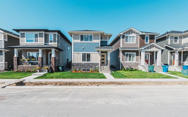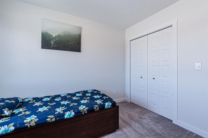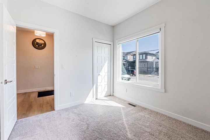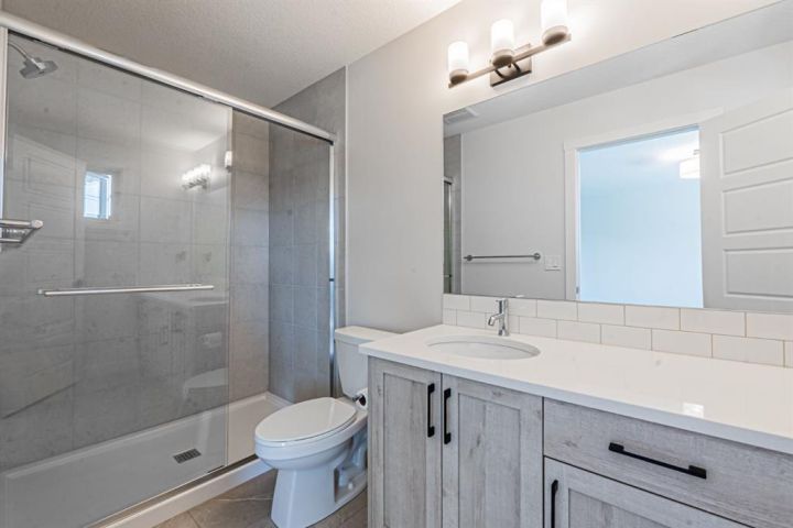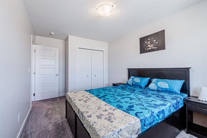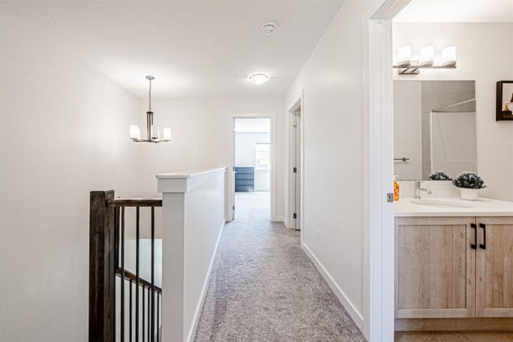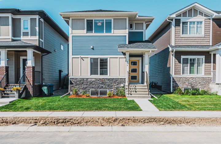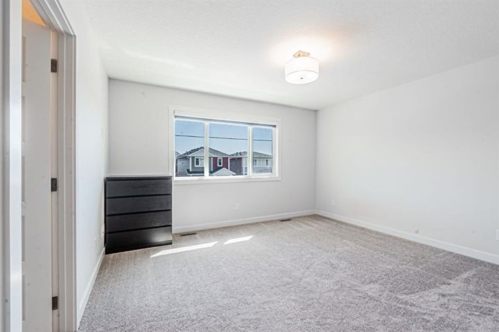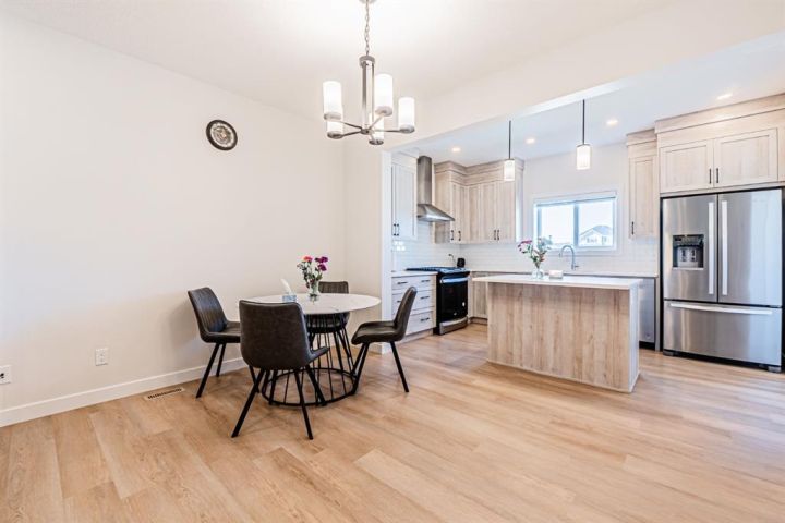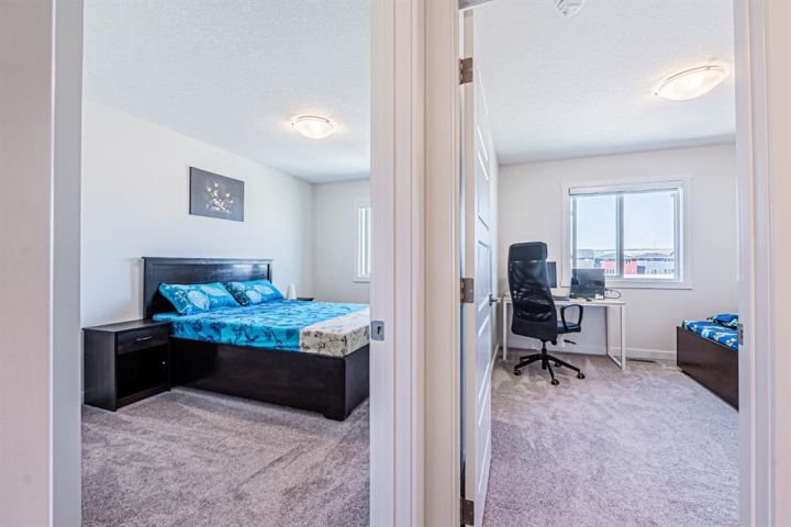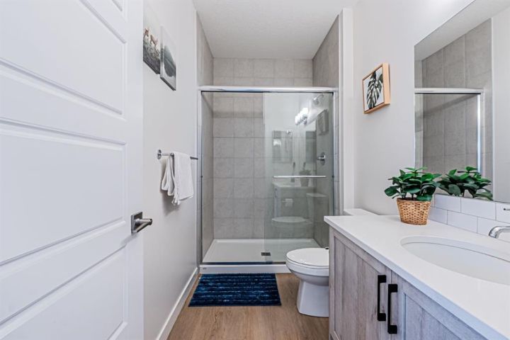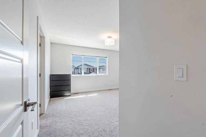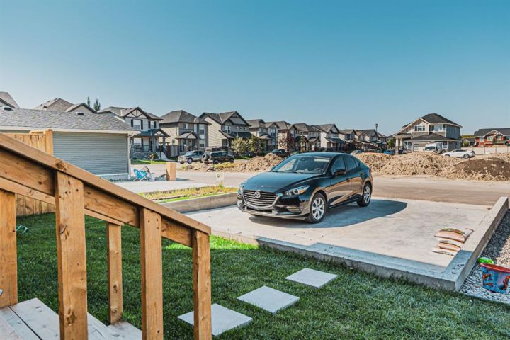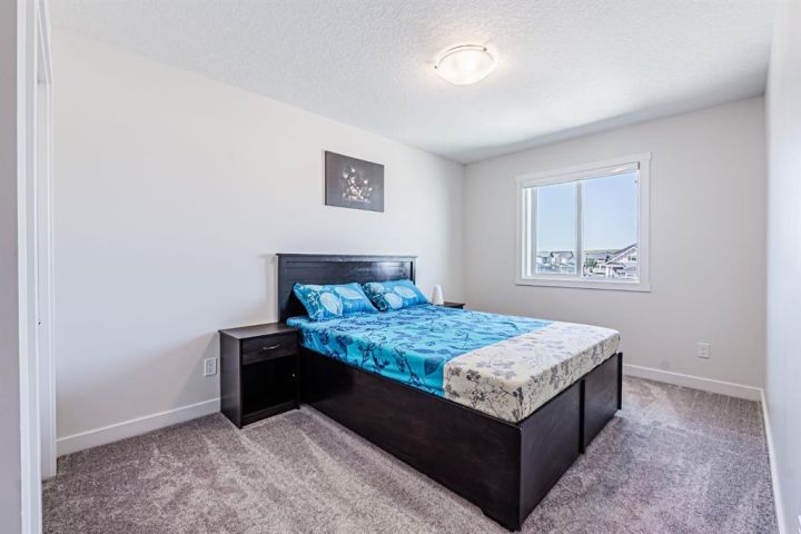 Welcome to this fully upgraded 4 bedroom, 3 full bathroom home located in the desirable Bayside community of Airdrie, close to schools, shopping, walking pathways, parks, and all amenities. The main floor features an open concept layout with a large upgraded kitchen that includes stainless steel appliances, upgraded cabinets, a spacious island, and a big pantry, along with a full bedroom and full bathroom that add flexibility for guests or extended family. Upstairs you will find a spacious primary bedroom with a walk-in closet, two additional bedrooms, another full bathroom, and a convenient laundry area. The basement offers a separate side entry, 9 foot ceilings, and excellent potential to be developed to suit your needs. The exterior is complete with front and back landscaping, a paved back lane, and a concrete garage pad at the back that provides parking and future garage development potential. Don’t miss out on this incredible opportunity—schedule your viewing today.