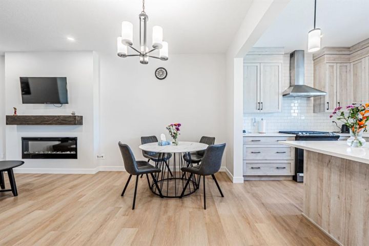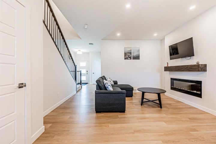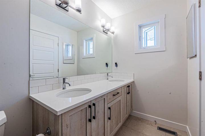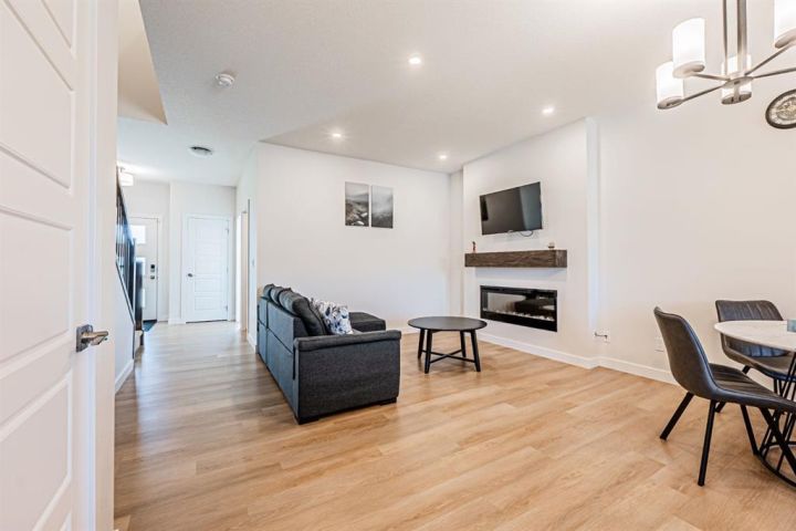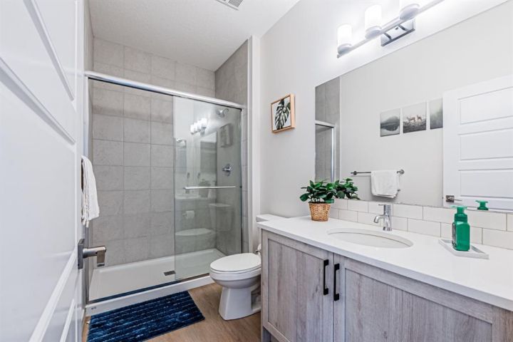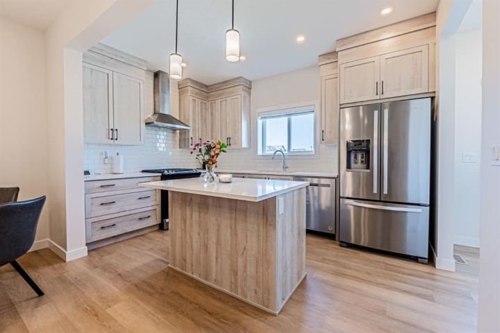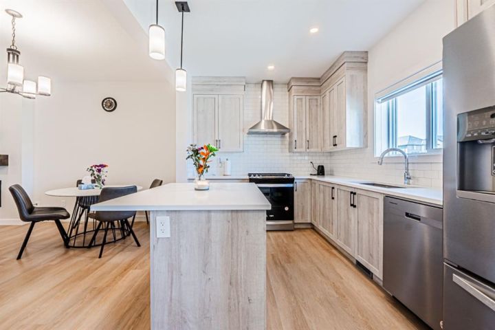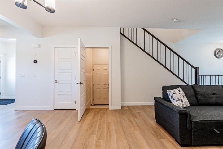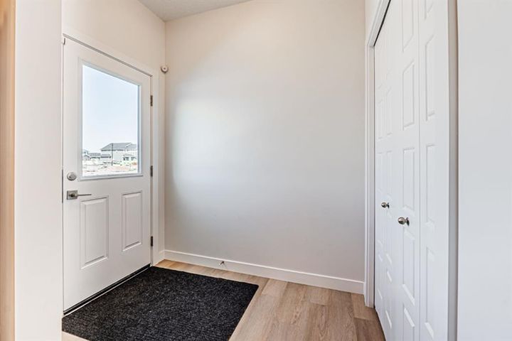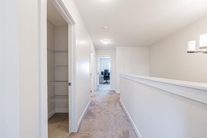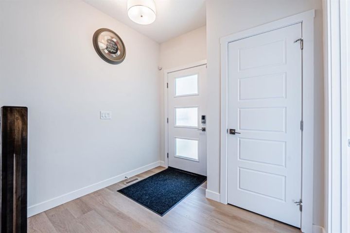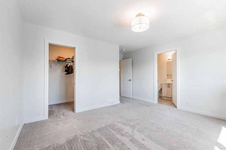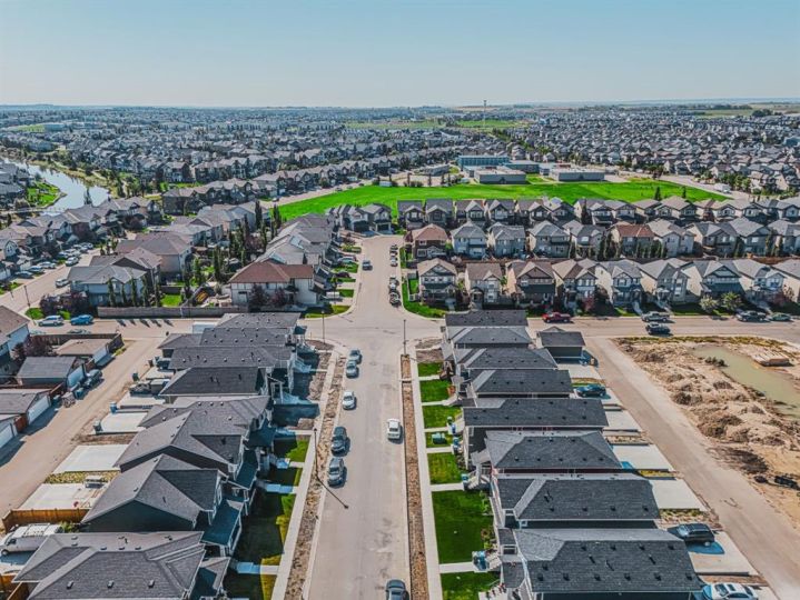 Welcome to this fully upgraded 4 bedroom, 3 full bathroom home located in the desirable Bayside community of Airdrie, close to schools, shopping, walking pathways, parks, and all amenities. The main floor features an open concept layout with a large upgraded kitchen that includes stainless steel appliances, upgraded cabinets, a spacious island, and a big pantry, along with a full bedroom and full bathroom that add flexibility for guests or extended family. Upstairs you will find a spacious primary bedroom with a walk-in closet, two additional bedrooms, another full bathroom, and a convenient laundry area. The basement offers a separate side entry, 9 foot ceilings, and excellent potential to be developed to suit your needs. The exterior is complete with front and back landscaping, a paved back lane, and a concrete garage pad at the back that provides parking and future garage development potential. Don’t miss out on this incredible opportunity—schedule your viewing today.