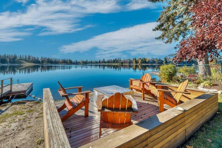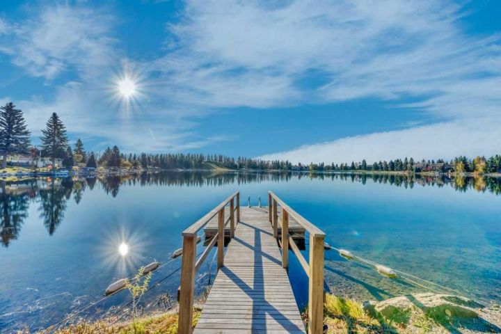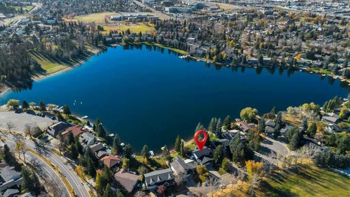 Waterfront Living in Calgary’s Midnapore – A Rare Opportunity! Welcome to one of Calgary’s most private lakefront homes, tucked away on a quiet street in the sought-after community of Lake Midnapore. This beautifully renovated property sits on a large 11,000 sq. ft. south-facing lot, offering all-day sunshine, mature trees, and an unmatched sense of space and privacy. Unlike newer lake communities, this exclusive street offers ample parking and a true cottage-style atmosphere, rarely found in the city. From your backyard, enjoy unobstructed views across the lake to peaceful green space, not other homes. Relax or entertain on the spacious 700 sq. ft. deck, or step down to your private dock for swimming, paddleboarding, or skating year-round. Inside, the open-concept main floor features a dream kitchen, a custom bathroom, laundry area, and a flexible 4th bedroom or office. Upstairs, three generous bedrooms include a luxurious primary suite with a private balcony overlooking the water and an elegant ensuite. The fully developed basement adds comfort and versatility with a gym, sauna, shower room, media area, and 5th bedroom, ideal for family or guests. Beyond its move-in-ready appeal, this property also represents one of the best redevelopment lots on the lake, a rare opportunity to design your dream waterfront estate in the future. Located just 20 minutes from downtown Calgary, this home perfectly blends lakeside tranquility with city convenience. Don’t miss your chance to own a true lakefront retreat in the city, schedule your private showing today!