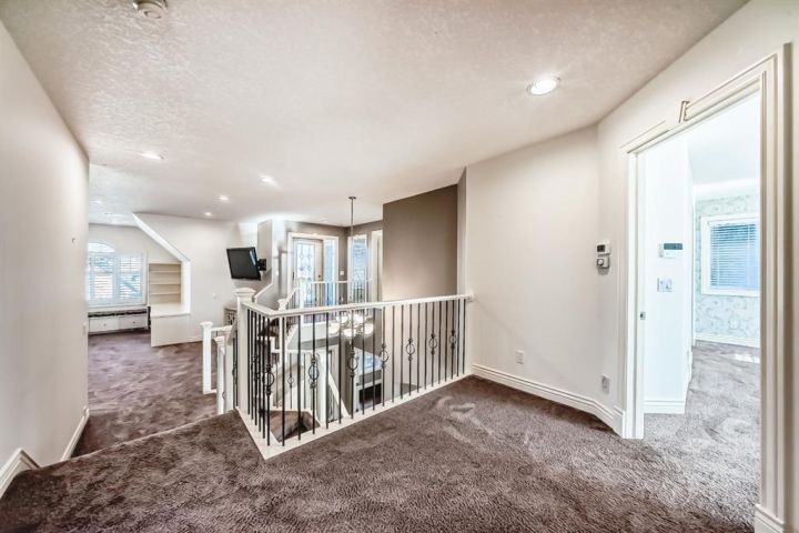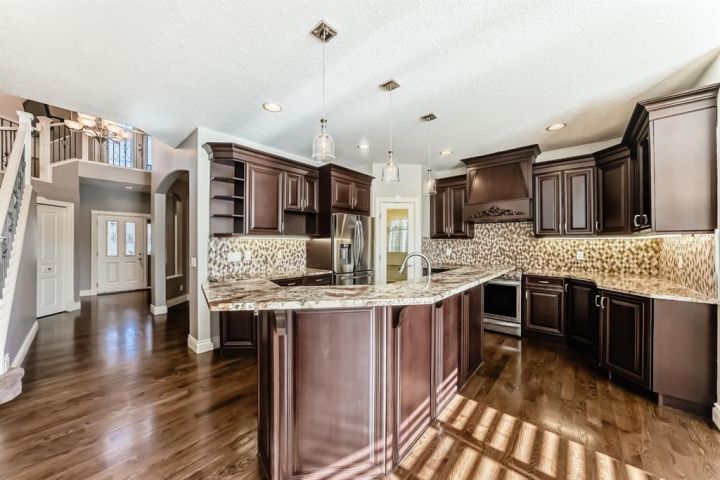 Elegance! This Evergreen Estates home features numerous upgrades and backing onto green space, pathway, mature trees and privacy. Stately curb appeal welcomes you inside. Executive air conditioned 2 storey, bonus room and a functionally developed walkout on a quiet cul-de-sac. Extensive upgrades, many built-ins, speakers and plantation shutters throughout. MAIN FLOOR: Hardwood and tile with 9' ceilings. Office or den. Large dining room. Fully renovated gourmet kitchen with cherry wood cabinets, breakfast bar, granite countertops, stainless steel appliances, sink in large island with eating area open to an inviting family room, fireplace and custom built in shelving on the feature wall. French door leading out to deck with metal railings & glass panels in south facing back. The deck has stairs leading to the backyard. Laundry and mudroom with custom closet lockers and a two piece powder room. UPSTAIRS: The staircase with painted railings and iron rod spindles lead up to a very large bonus room with some built ins and charming window seat. Enjoy the large primary bedroom with a five piece ensuite bath, and a spacious walk-in closet. There are also two generous sized bedrooms and a 4pc main bath. Another den or office with a cozy balcony overlooking the front of the home. DEVELOPED DOWN: Walk out with bright large windows leading to a covered patio and a professionally landscaped, private yard. In-floor heating. Large recreation room, bedroom, 3 piece bathroom and very large storage room. Excellent space for a mature child or mother-in-law. Underground sprinklers, mature trees, gazebo and privacy hot tub. Oversized double garage with good storage space and raised ceiling. From the back gate walk or bike to our amazing Fish Creek Provincial Park (approximately 500 steps away)! This is one of the most coveted areas in the city, with local amenities and excellent schools nearby. Transit accessible and a short drive to the Shawnessy shopping area. Great proximity to Macleod Trail and Stoney Trail put the rest of the city in easy driving distance, and the location provides easy access to the Rocky Mountains! All major amenities are only minutes away.