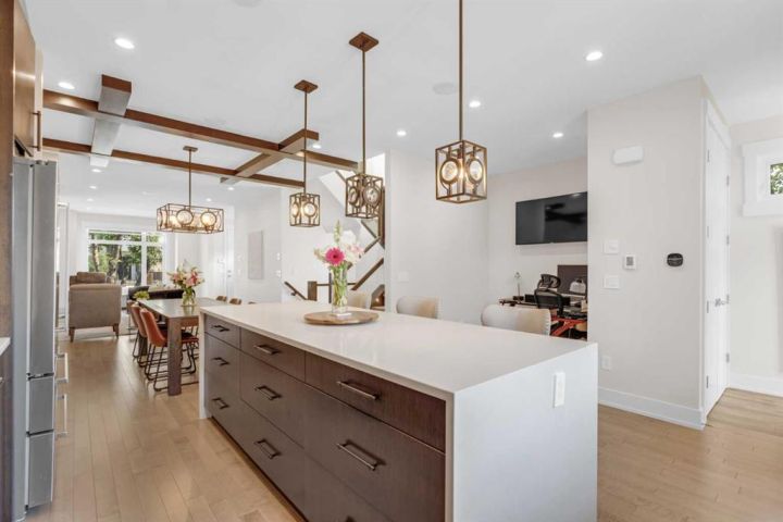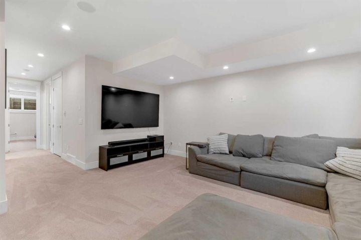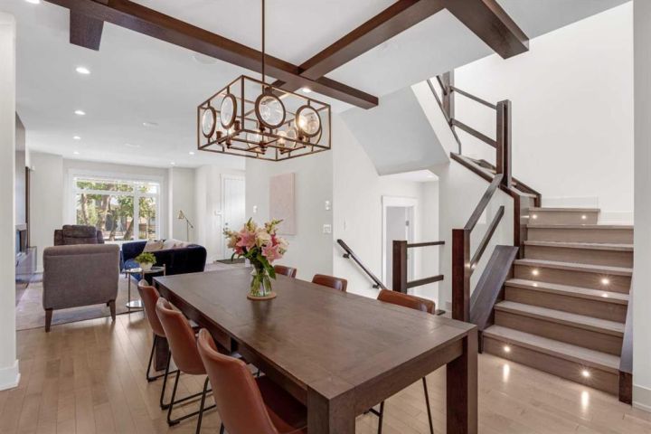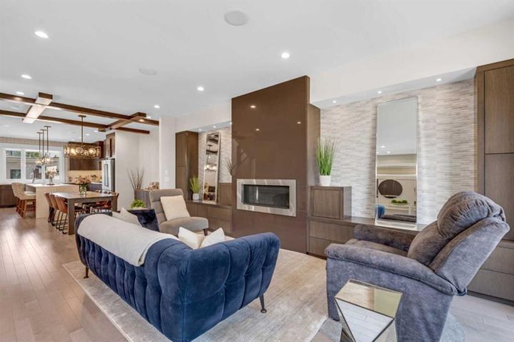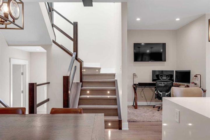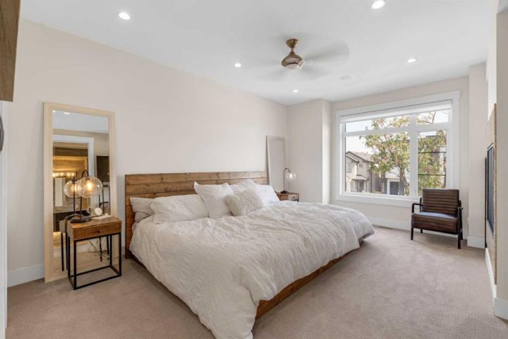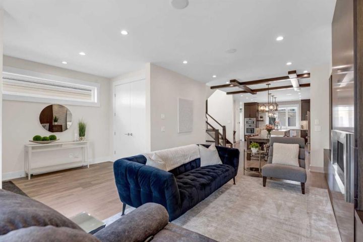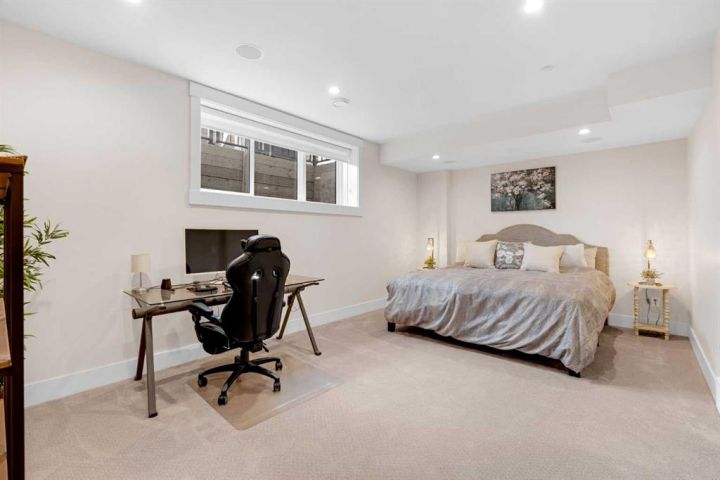 Welcome to 2635 29 Street SW. This exquisite custom home, spanning over 2,600 square feet of meticulously designed high-end living space, stands as a true masterpiece. A sprawling backyard and an expansive 3-CAR GARAGE elevate its uniqueness within its price range. As you step into the foyer, an aura of warmth and opulence envelops you, setting the tone for the grandeur that unfolds. The chef's dream designer kitchen boasts custom tile work, stainless steel appliances, ceiling-height cabinetry, and a charming breakfast nook, redefining culinary experiences. The living room boasts a captivating fireplace nestled amidst thoughtfully crafted built-ins, creating an inviting ambiance. Adding to the allure, the dining area boasts elegantly crafted ceiling beams that epitomize refined taste. Ascending to the upper level, you'll discover three generously sized bedrooms, each offering a haven of comfort and style. The primary suite redefines indulgence with its substantial walk-in closet and a spa-inspired ensuite, adorned with a double-sided fireplace for the ultimate relaxation. Venturing to the lower level, an entertainer's paradise awaits. An impeccable built-in bar, an inviting entertainment room, and a tastefully designed wine room combine seamlessly to cater to your hosting needs. An additional bedroom on this level, complete with its own bathroom, ensures privacy and comfort for guests. The immersive sound experience is woven throughout the home, courtesy of strategically placed built-in speakers. The vast yard extends an invitation to outdoor gatherings, featuring an enchanting fireplace and a deck that creates an idyllic setting for al fresco entertainment. In summary, this beautiful home has many carefully curated features, an expansive layout, air conditioning, a gas heater in the garage, and impeccable attention to detail combined to offer an unparalleled living experience that exceeds expectations.