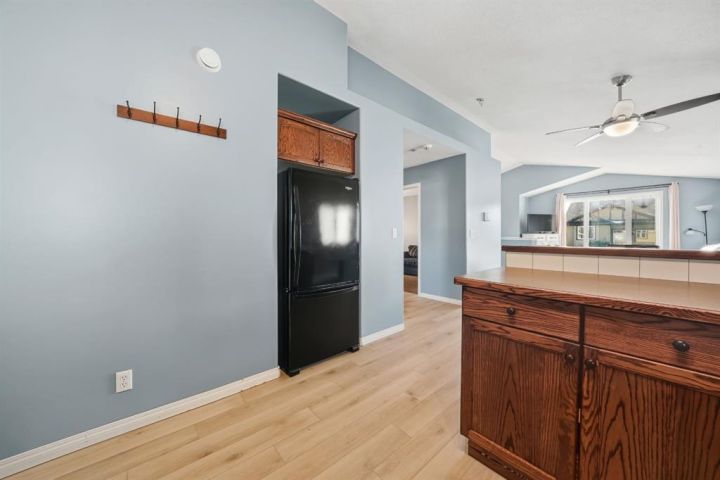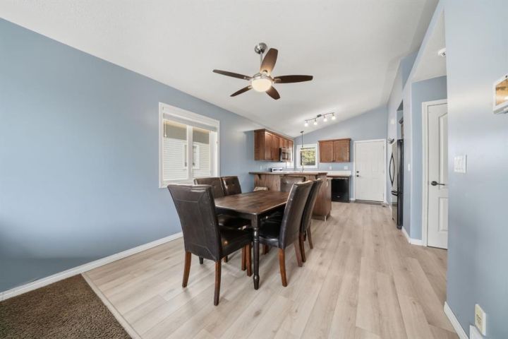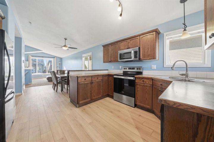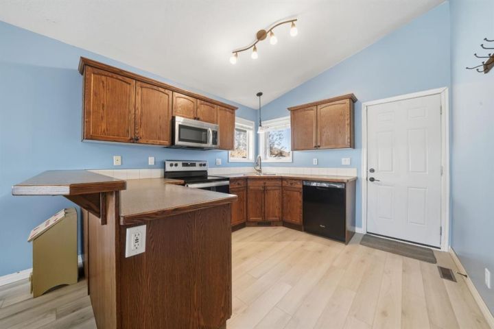 Perfect starter home in the heart of family friendly Penhold! This charming five bedroom two bath home features an open concept main floor with a functional C-shaped kitchen and warm tone cabinetry enjoy a fully fenced yard ideal for kids or pets with convenient rear parking close to school shopping in just a short drive to the city of red deer this home offers comfort value and a great location.