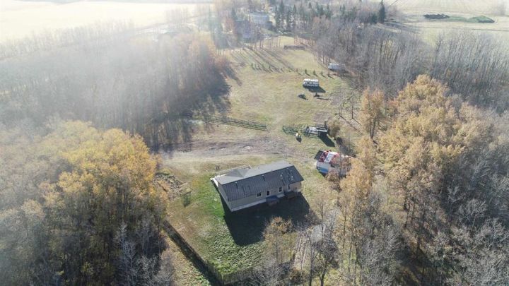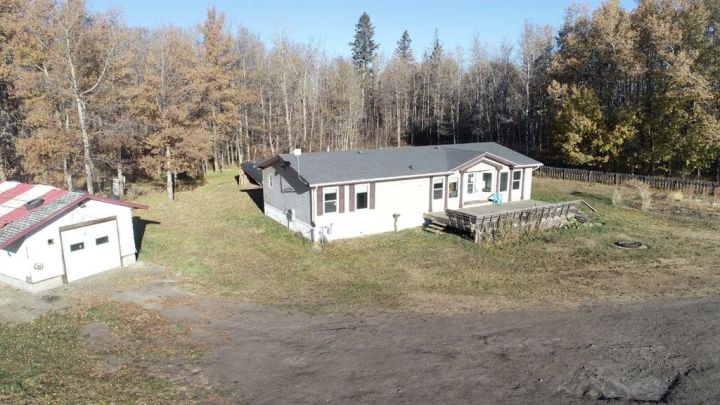 Escape to your own slice of rural paradise on this expansive 10-acre parcel, ideally located only 6 km from town, and within close proximity to the Highway 2 Corridor. Perfect for horse enthusiasts, or those seeking peaceful country living with easy access to amenities, schools, and highway access. Drive down the treelined driveway to the spacious modular home that offers 1,500+ sq ft of potential, featuring 4 generous bedrooms and 2 full bathrooms. The primary bedroom has its own private ensuite bathroom for added convenience. Step outside to enjoy the large deck. The detached garage provides parking and/or extra storage for tools, toys, or vehicles. Additional highlights include ample space for outbuildings, gardens, or livestock, usable land with room to roam, or even a great building site down the road. This property is priced to sell and brimming with opportunity.