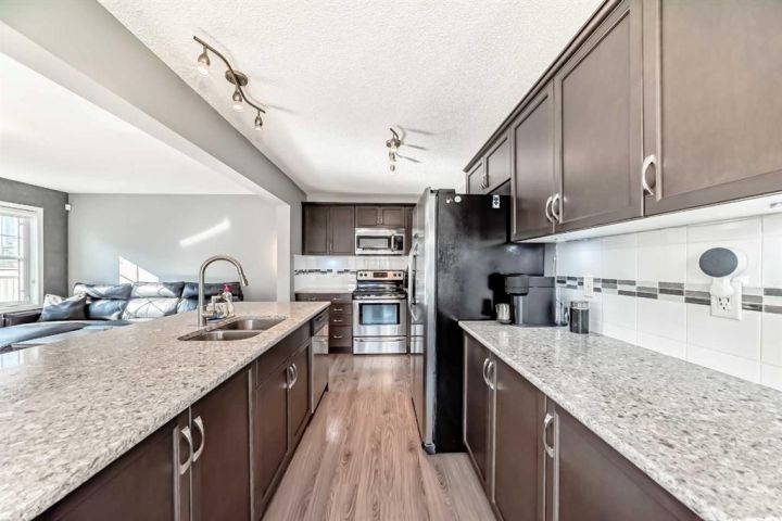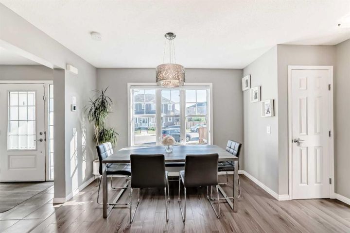 Welcome to Southwinds in Airdrie. This charming detached home is situated on a desirable corner lot with just under 1,800 sq. ft. of living space, offering 4 bedrooms and 2.5 bathrooms. Perfect for growing families, first-time buyers, or investors, this property combines comfort, function, and style. The main floor features a cozy gas fireplace, convenient laundry, and a bright, open layout where natural sunlight pours in throughout the day. Additional highlights include air conditioning, a double attached garage, lots of yard space, and a welcoming wrap-around porch—ideal for relaxing or entertaining. The undeveloped basement provides endless possibilities to customize to your needs, while thoughtful touches like modern light fixtures and designer wallpapers add a stylish finish. All this in a family-friendly community, within walking distance to schools, shopping, and everyday amenities, plus only 10 minutes to CrossIron Mills and 17 minutes to Calgary International Airport.