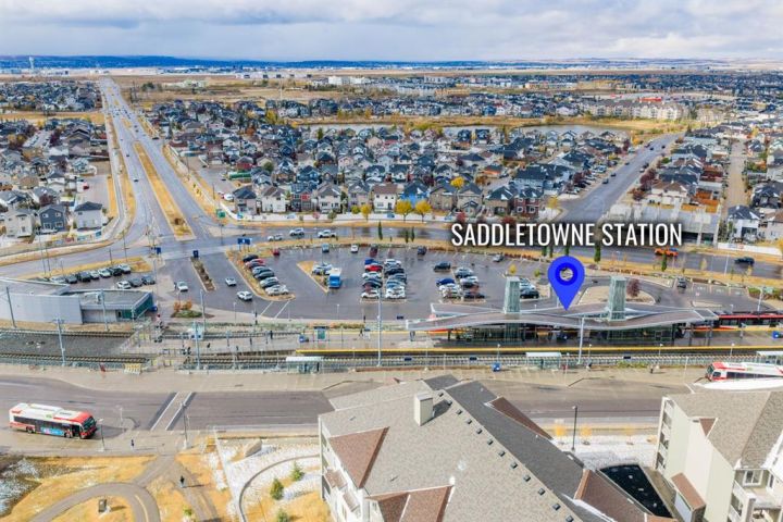 Bright and spacious corner 2-bedroom + large den condo on the 4th floor in the heart of Saddletowne Circle — an unbeatable location just steps from the transit station, banks, grocery stores, recreation centre, and schools. This sun-filled unit features 2 full bathrooms, a private balcony, and assigned underground parking. Enjoy an open-concept layout with modern finishes and abundant natural light from multiple directions. The versatile den makes a perfect home office or guest room.Corner unit advantage: enhanced privacy and improved airflow. Ideal for investors or first-time buyers seeking both comfort and convenience in a vibrant, walkable community.