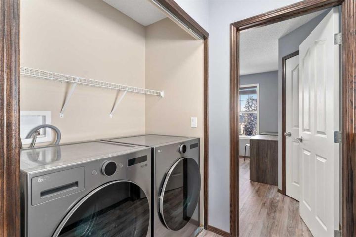 Welcome to 210 Cranberry Place SE, a charming and updated home in the heart of Cranston — just steps from parks, schools, shopping, public transit, and the community center. This well-maintained property offers great curb appeal and a sunny, south-facing backyard complete with a large L-shaped deck, a spacious shed, and a insulated double detached garage for added convenience. Inside, you'll find a bright, open-concept main floor with a front flex room that’s perfect for a home office or quiet reading space. The kitchen is well laid out with a center island and eat-up bar, a pantry, and all appliances have been replaced within the past year. The living and dining areas flow nicely together, and a 2-piece bathroom completes the main level. Upstairs offers a generous primary suite with a walk-in closet and full 4-piece ensuite, plus two additional bedrooms connected by a Jack & Jill bathroom. The laundry is conveniently located on this level as well. The developed basement includes two additional rooms that could function as bedrooms (note: no closets), a rec space, and a dedicated dog grooming room equipped with two grooming stations and a washing machine — all of which can be included in the sale or removed at the buyer’s request. This is an excellent opportunity to own a move-in ready home in one of Calgary’s most family-friendly communities. Book your showing today!