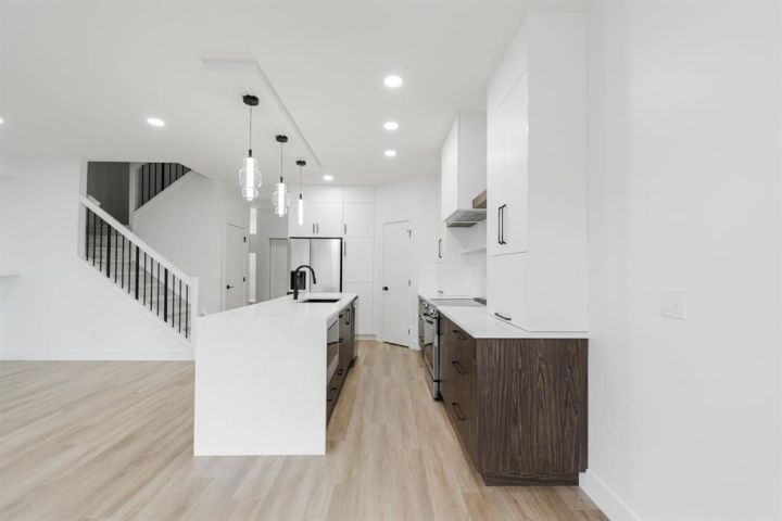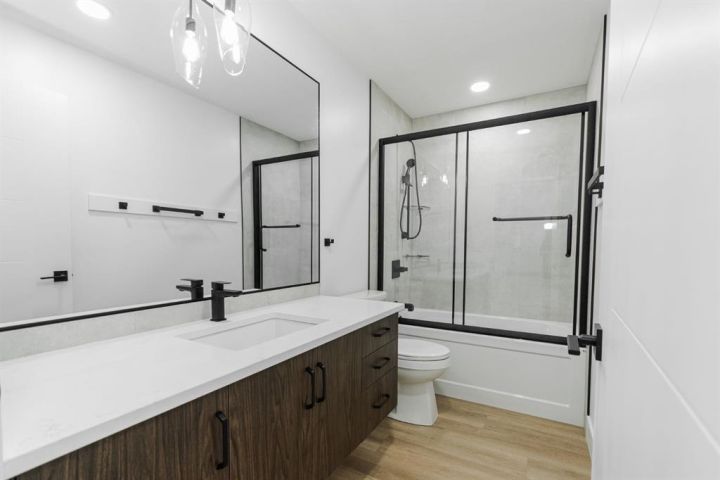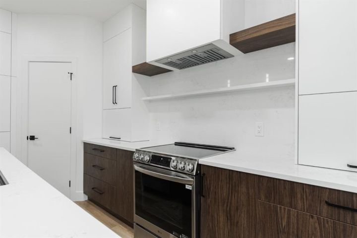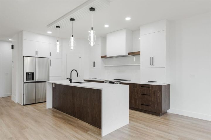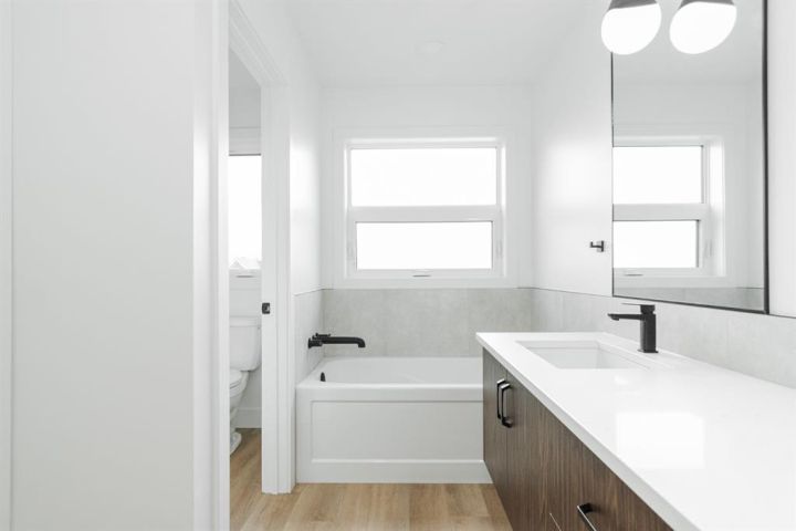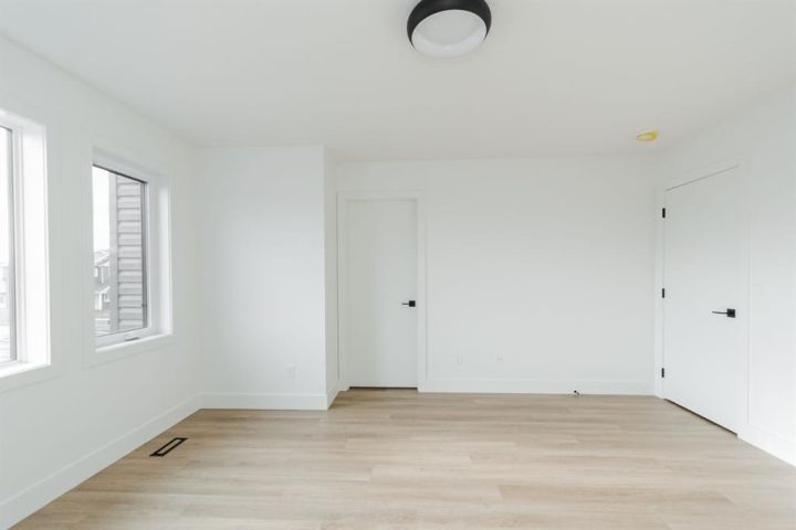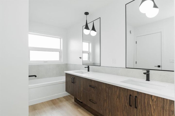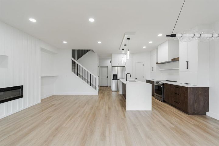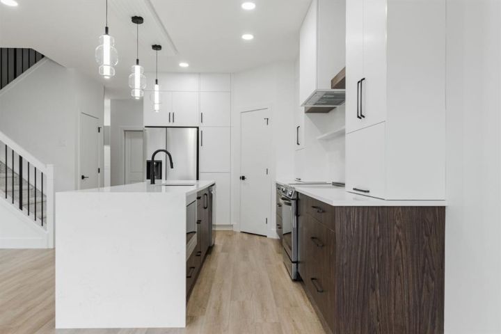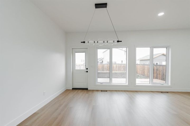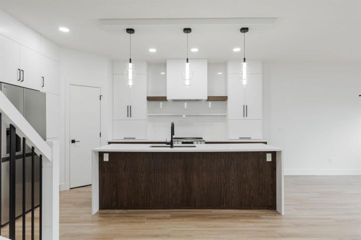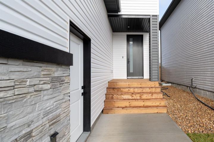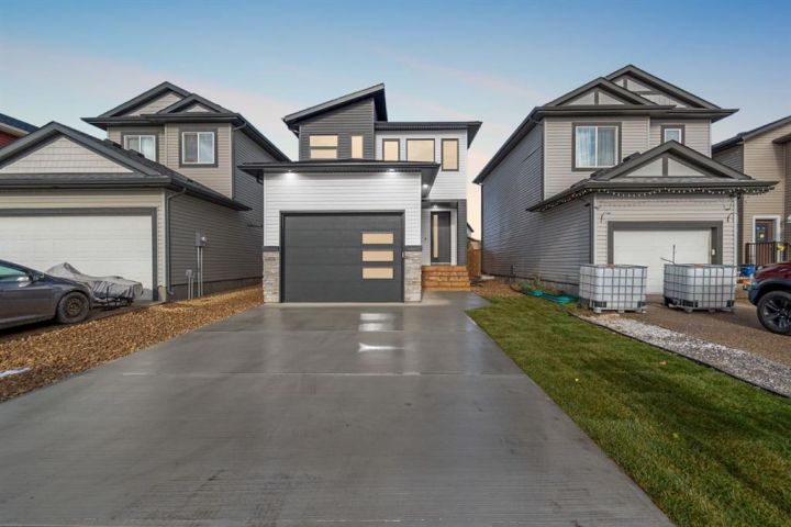 Welcome to 123 Athabasca Crescent: a high-end home without the high-end price tag. KUTA Homes has crafted another stunning masterpiece in the community of Abasand, where quality construction meets refined design. Offering 1,780 square feet of beautifully finished living space, this home showcases elevated features such as waterfall countertops, slab backsplash, high-end flat panel cabinetry, floating vanities, upgraded lighting, and a functional layout suited for today’s modern lifestyle. Backed by a 10-year new home warranty, this property is a rare opportunity to own a brand-new home built by one of Fort McMurray’s most trusted and respected local builders. The exterior sets the tone with modern curb appeal, a striking upgraded 8ft front door, and thoughtful design details that carry throughout the interior. Step inside and you’re welcomed by a bold black feature wall with a built-in mirror and hooks, introducing the home’s sleek aesthetic. Luxury vinyl plank floors flow seamlessly throughout, complementing the open-concept main living area that’s filled with natural light and enhanced by LED lighting. The living room centres around a beautiful fireplace feature wall, while the kitchen is a true showpiece — featuring a waterfall island, a built-in stone shelf over the stove, and modern cabinetry with a convenient pantry for added storage. All new appliances are included and come with full warranties for peace of mind. Upstairs, the second level is designed as a private retreat. The primary bedroom sits at the top of the stairs and exudes luxury with pendant lighting over the bed, a spacious walk-in closet with built-ins, and a spa-inspired ensuite complete with a floating vanity, freestanding soaker tub, large walk-in glass shower, and elegant lighting. Down the hall, you’ll find two additional bedrooms, a full four-piece bathroom finished with the same upscale touches, and a convenient laundry room equipped with a sink and upper cabinets. Every detail of this home reflects craftsmanship, quality, and contemporary design — from its layout to its luxurious finishes. Brand new, thoughtfully built, and move-in ready, 123 Athabasca Crescent is a standout home that blends modern sophistication with everyday functionality. Don’t miss your chance to own this exceptional property.