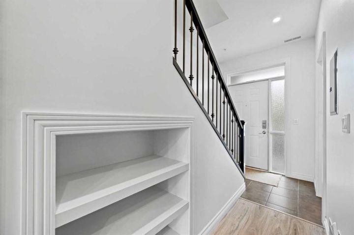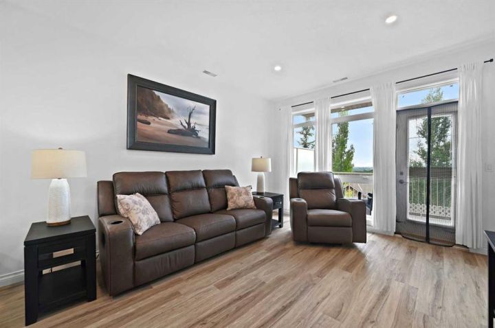 Welcome to your Rocky Ridge retreat, a two-storey condo where thoughtful design meets mountain-view magic. With over $40,000 in upgrades, this isn’t just a renovation - it’s a reinvention of space, light, and style. Step inside and you’ll feel it immediately : airy 9-foot ceilings, endless sunlight from oversized south-facing windows, and a flow that just makes sense. The main floor shines with new wide-plank luxury vinyl, modern lighting, and a completely redesigned kitchen, quartz countertops, Italian tile backsplash, new fixtures, pot lights, and yes… the popcorn ceiling is officially gone. Upstairs, the primary suite is pure calm, offering panoramic greenspace views and a sleek private ensuite. The second bedroom is generous and bright, with double closets and access to an updated 4-piece bath that feels straight out of a boutique hotel. Practical perks? Two titled underground parking stalls, a titled storage locker, and access to a fully equipped fitness centre all within a well-managed complex surrounded by parks, transit, and the best of Rocky Ridge. Whether you’re a first-time buyer, downsizer, or investor, this home checks every box: stylish, move-in ready, and filled with natural light. Elevated living starts here. Book your showing today, your next chapter in Rocky Ridge is waiting.