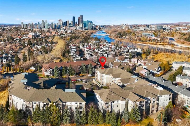 Discover exceptional value and lifestyle in this top-floor corner condo at Pearce Gardens, perfectly situated in the heart of Calgary’s vibrant Inglewood community. This immaculate 2-bedroom, 2-bath home offers nearly 900 sq. ft. of stylish, open-concept living with soaring vaulted ceilings, abundant natural light, and sweeping south and west-facing views of the city skyline and surrounding treetops. The inviting living area features a cozy gas fireplace and access to a private balcony—ideal for relaxing or entertaining while enjoying the sunset. The modern kitchen offers plenty of counter space, a breakfast bar, and a full appliance package. The spacious primary suite includes a walk-in closet and a private 3-piece ensuite, while the second bedroom and full 4-piece bath are perfect for guests, roommates, or a home office. Additional highlights include in-suite laundry, titled heated underground parking, and a separate storage locker. The well-managed complex offers a fitness centre, party room, secure underground visitor parking, and beautifully landscaped grounds. Located just steps from the Bow River pathways, Pearce Estate Park, and Inglewood’s unique shops, cafes, breweries, and restaurants, this home offers the perfect blend of tranquility and urban convenience. Easy access to downtown, major roadways, and transit make it ideal for professionals, downsizers, and investors alike. Move-in ready and meticulously maintained—don’t miss your opportunity to own a piece of one of Calgary’s most sought-after inner-city neighborhood's! Rare opportunity to own the best unit in the best Inglewood location!