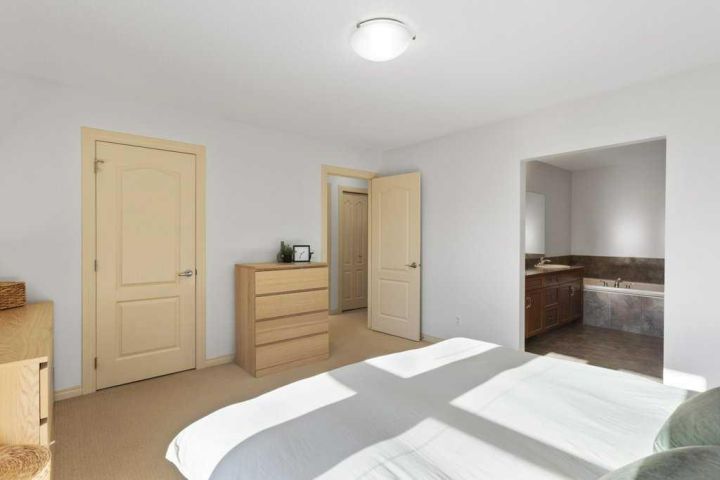 Welcome home to this beautifully maintained 1,960 sq. ft. family home in the highly sought-after community of Montrose. With 3 bedrooms, 2.5 bathrooms, and an abundance of natural light, this property combines comfort, style, and function. The inviting front entry opens to a bright main floor featuring a convenient 2-piece powder room and main-floor laundry. The kitchen offers a large pantry, plenty of cupboard and counter space, a functional island, and a breakfast bar. The adjoining dining area provides easy access to the backyard, while the cozy living room with a gas fireplace is the ideal spot to relax. A wall of south-facing windows floods the main floor with natural light year-round. Upstairs, you’ll find a spacious bonus room, a 4-piece main bathroom, and three generous bedrooms. The primary suite features a large walk-in closet and a luxurious ensuite complete with a double vanity and relaxing soaker tub. Enjoy the outdoors on the private deck with a built-in privacy wall overlooking the fully fenced backyard—perfect for kids, pets, and entertaining. Additional highlights include genuine hardwood flooring, central air conditioning, and an oversized double attached garage. Located in a vibrant family-friendly neighbourhood close to walking paths, schools, shopping, rec centre, and playgrounds. Please click the multimedia tab for an interactive virtual 3D tour and floor plans.