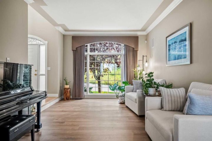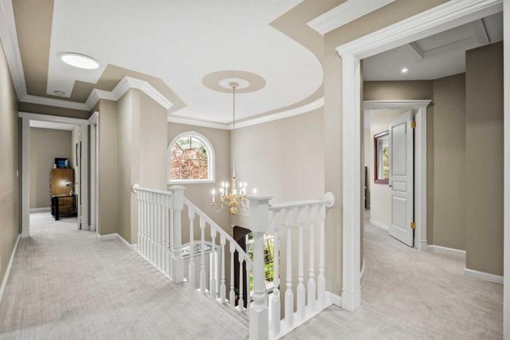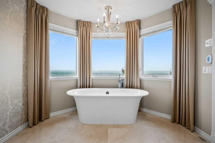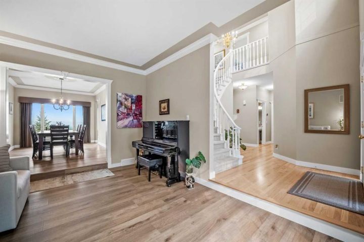 Welcome to 136 Patrick View SW—an executive walkout residence offering over 4,400 sq ft of refined living space, perched abovea protected nature reserve in one of Patterson’s most prestigious enclaves. With 3,119 sq ft across the main and upper levels, plus an additional1,300+ sq ft in the fully developed walkout basement, this home delivers luxury, functionality, and lasting value. From the moment you enter, a grandstaircase and sunlit foyer set the tone for timeless sophistication. The main floor flows seamlessly through formal and casual living spaces, with newlyrefinished hardwood, luxury vinyl plank, and designer lighting. The professionally renovated kitchen features granite counters, a gas cooktop, and abuilt-in appliance wall with microwave above and oven below—anchored by a crystal-lit island and breakfast nook that opens to a topless glass raildeck framing panoramic river valley views. Upstairs, the primary suite is a sanctuary with heated marble floors, a freestanding soaker tub beneath achandelier, and a walk-in closet with custom cabinetry and brass accents. The ensuite also includes a frameless glass shower with rainfall andhandheld heads, and dual vanities with elegant lighting. Three additional bedrooms and a 5-piece bath offer comfort and flexibility for family orguests. A dedicated home office, a serene wellness room, and an elegant upper hallway with tray ceiling and chandelier add both function and flair.The walkout level is designed for leisure and entertaining, featuring a spacious rec room with fireplace, red-felt pool table, built-in bar with glasscabinetry and mini fridge, media lounge, and a cozy dining nook with bay windows. Additional guest bedrooms and a full bath complete the lowerlevel, while large windows flood the space with natural light. Outside, enjoy a professionally landscaped yard with mature trees, a recessed fire pitarea with stone surfacing, a private dog run, and a covered patio beneath the elevated deck. The property backs onto a nature reserve, offeringunobstructed views and exceptional privacy. Aerial perspective reveals the home’s prime location—just minutes from top schools, boutique shopping,and downtown Calgary, yet surrounded by greenery and tranquility. Over $35,000 in recent upgrades—including new A/C, hot water tank (2025),washer/dryer, range hood, window treatments, garage painting, and refreshed landscaping—complement earlier renovations to the kitchen, ensuite,and deck. Every detail reflects pride of ownership and professional care. This is elevated living—crafted for those who expect more.