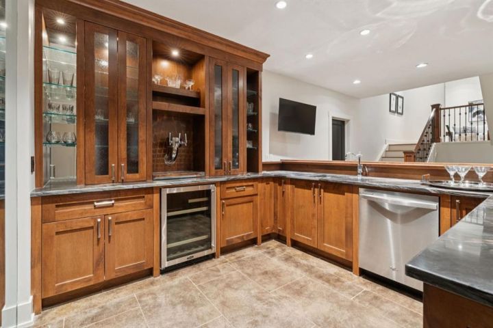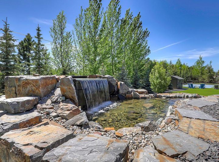 Experience the pinnacle of luxury living in this remarkable Veranda Homes estate, set on one of the largest lots in the coveted first phase of Watermark. Enveloped by hundreds of mature trees on a private .8 acre parcel, this property embodies the serenity of a secluded retreat, yet it’s only 20 minutes from downtown Calgary. With nearly 5,800 sq.ft. of exquisitely finished living space, this residence offers 6 total bedrooms (four up) and five bathrooms, blending timeless design with modern sophistication. Inside, rich site finished hardwood floors, custom millwork and built-ins throughout, and multiple fireplaces create an atmosphere of warmth and refinement. The chef’s kitchen impresses with Wolf and SubZero appliances, custom cabinetry, and open, light-filled spaces that flow seamlessly into the home’s elegant living areas. This home is fully integrated with a Control4 home automation system, giving you effortless command of lighting, temperature, security, sound, and entertainment; whether you’re home or away. Every space can be tailored to your mood or moment, from dimmed ambient lighting during dinner to whole-home music streaming on quiet evenings. Outside, the property unfolds like a private park, an achievement of landscape architecture rarely seen at this scale. The Rocky Mountain inspired waterfall and meandering creek set a tranquil tone as they flow beside the expansive poured aggregate patio, surrounded by towering evergreens and deciduous trees, layered greenery, and meticulously crafted stonework. The result is a lush, immersive environment that feels alive in every season. This landscape represents years of care, vision, and artistry, an irreplaceable collection of fully established trees, sculpted gardens, and outdoor living spaces that would require well over $1 million and a decade or more to recreate. And even then, what price can be placed on time itself; the ten years of growth, maturity, and natural harmony that make this setting truly one of a kind. From the sports court and pergolas to the hot tub, fire pit, and covered courtyard with powered screens, every inch of the property has been curated for beauty, privacy, and ease of living. Even the lawn is finished in premium turf, offering a flawless, evergreen appearance with virtually no maintenance so your time can be spent enjoying the setting rather than tending to it. For the car enthusiast, the oversized triple attached garage includes over-height doors, two EV outlets, and space for vehicle lifts, while the expansive driveway easily accommodates six or more cars, perfect for guests or gatherings. From its architectural pedigree to its immersive natural setting, this home stands as one of Watermark’s true showpieces; a home that defines luxury, privacy, and effortless living in perfect harmony.