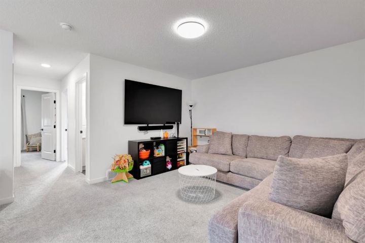 OPEN HOUSE SAT OCT 25, 1-4PM. Welcome Home to The Willows! This beautifully upgraded and fully developed 4-bedroom, 3.5-bath semi-detached home is the perfect blend of modern style and family-friendly comfort. Step inside and you’ll love the bright, open layout featuring durable laminate flooring throughout the main level. The spacious living room is anchored by a cozy GAS FIREPLACE—the perfect spot to unwind after a long day. The chef-inspired kitchen is a true showpiece with its two-toned cabinetry, QUARTZ countertops, upgraded stainless steel appliances, and stylish tile backsplash. You’ll appreciate the walk-through pantry and functional mudroom that make everyday living a little easier. A convenient half bath completes the main floor. Upstairs, the primary suite offers a relaxing retreat with a large walk-in closet and a gorgeous 5-piece ensuite with dual sinks and quartz counters. Two additional bedrooms, a 4-piece main bathroom, also with quartz, and upper laundry add convenience and practicality. The CENTRAL BONUS ROOM is a great flex space for movie nights, a playroom, or a home office. The fully developed basement features high ceilings, a spacious family room, a fourth bedroom, and a beautifully finished 3-piece bathroom—perfect for guests or teens needing their own space. The over extended single attached garage allows room for your vehicle and storage. Step outside to your private, landscaped backyard complete with a deck for BBQs and summer evenings. Located just steps from parks, pathways, shopping, and all the amenities The Willows has to offer, this home truly checks every box.