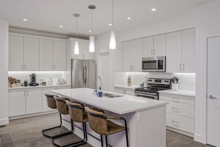 Welcome to this stunning semi-detached up/down bungalow in the heart of Altadore, perfectly positioned just steps from the shops and cafés of Marda Loop and 10 minutes to downtown. With over 2,300 sq ft of thoughtfully designed living space, this home combines modern style with the ease of low-maintenance living. The main level features an inviting open-concept design with 9-ft ceilings, hardwood floors, and a chef’s kitchen finished with quartz countertops, stainless-steel appliances, full-height cabinetry, and a spacious island for entertaining. The living area is warm and welcoming with a gas fireplace and access to a private front patio for your morning coffee or evening unwind. The primary suite impresses with a spa-inspired 5-piece ensuite and a massive walk-in closet with custom storage. The fully developed lower level offers a bright family room with wet bar, two additional bedrooms, a 4-piece bath, and excellent storage, ideal for guests or a home office setup. Enjoy the convenience of a self-managed exterior-maintenance program covering snow removal and exterior upkeep, perfect for those seeking a lock-and-leave lifestyle. A newer carport and private entrance complete this exceptional home. Experience the best of Altadore living with all the amenities and energy of Marda Loop just outside your door, from cafés and boutiques to vibrant community events throughout the year.