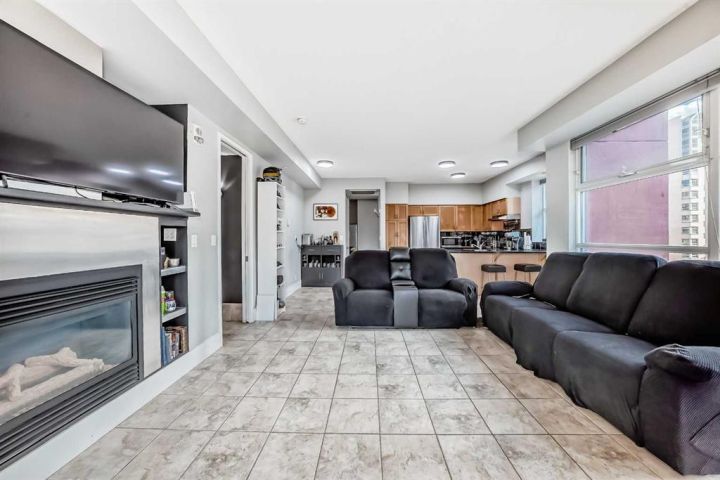 You will want to see this beautiful downtown oasis with central air, bright and spacious open design with ceiling to floor windows. Large entry foyer leads to beautiful large kitchen area with loads of natural wood cabinets, granite countertops, breakfast bar, and dining room. Beautiful well laid out living room surrounded with floor to ceiling windows with stunning views plus gorgeous gas fireplace and mantle with bookcase. There are 2 bedrooms with the primary bedroom having huge walkin clothes closet plus entrance to 4 pc bath. Modern ceramic tile flooring throughout adds to the modern clean design plus makes for easy maintenance. Great outdoor space with your 26 x 5 balcony with beautiful wood tiles which add beauty and comfort. All this just minutes from River pathways, Eau Claire park, East village and Chinatown. Call your favourite Realtor now to view.