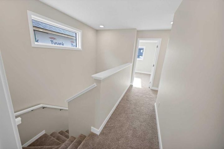 Introducing this beautiful QUICK POSSESSION semi-detached home in Harmony, expertly built by Homes by AVI, offering 1,524 sq. ft. of modern and functional living space. Thoughtfully designed, this home features 3 spacious bedrooms, 2.5 bathrooms, a large rear deck, a front porch, and a concrete parking pad. The main floor welcomes you with a bright, open-concept layout — a generous living room and a spacious kitchen ideal for entertaining, complete with high-end finishes throughout. Step outside to the rear deck, perfect for summer BBQs and outdoor gatherings. Upstairs, the primary suite includes a walk-in closet and a 3-piece ensuite, while the additional two bedrooms share a 4-piece bathroom and a convenient laundry area. The basement offers excellent potential for future development with a separate side entrance, 9-ft ceilings, 3-piece rough-in, and an extra window for added light. Nestled in the vibrant lake community of Harmony, surrounded by nature trails, parks, and upcoming amenities, this move-in-ready home perfectly blends style, comfort, and lasting quality.
