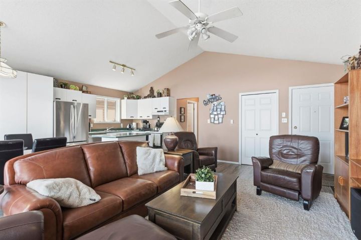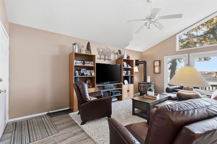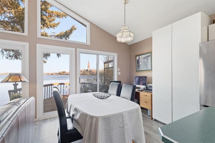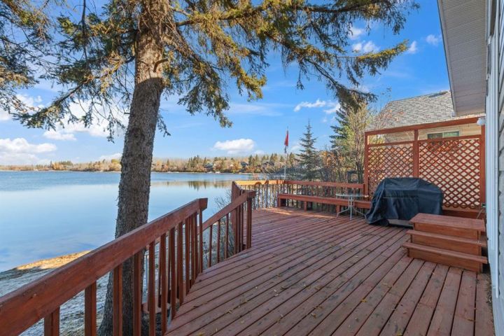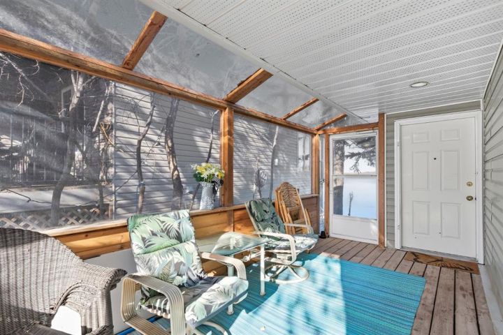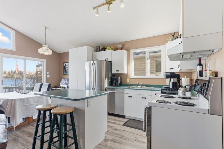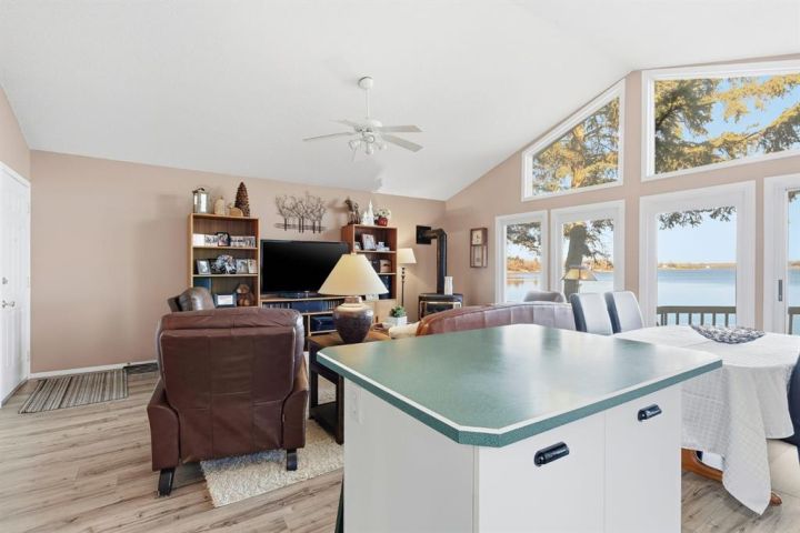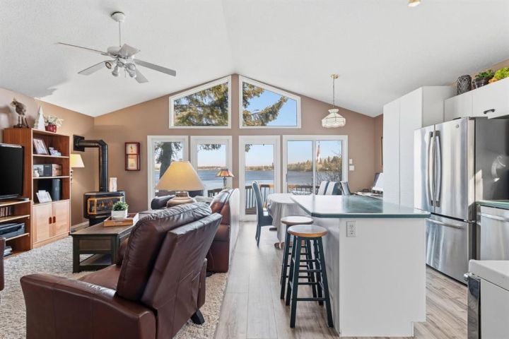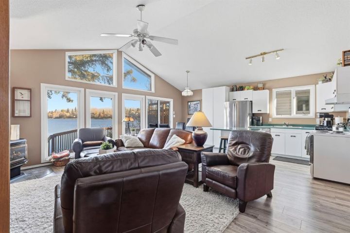 If you’ve been dreaming of lakefront living with one of the best views on the water, this year-round cabin at Sandy Beach Regional Park could be your perfect retreat. Located on the south end of the lake and just steps away from the main sandy beach and designated public swimming area, this property offers 864 sq. ft. of open-concept living designed to maximize light and views. The main living area features large windows overlooking the lake, filling the space with natural light and offering stunning sunset views. A cozy fireplace creates a warm, inviting atmosphere year-round. The layout includes two bedrooms and a four-piece bath, plus a welcoming sunroom/foyer, ideal for morning coffee or extra living space. Step out onto the spacious lakefront deck to relax, entertain, or simply take in the peaceful surroundings. The property also includes a 16’ × 24’ garage with a loft, ready to finish to your liking. Shingles were replaced on the home about six years ago. Sandy Beach is a gated community featuring a 9-hole golf course, pickleball court, playground, horseshoes, and a variety of social events to enjoy. Lakefront opportunities like this don’t come along often, your slice of paradise awaits!